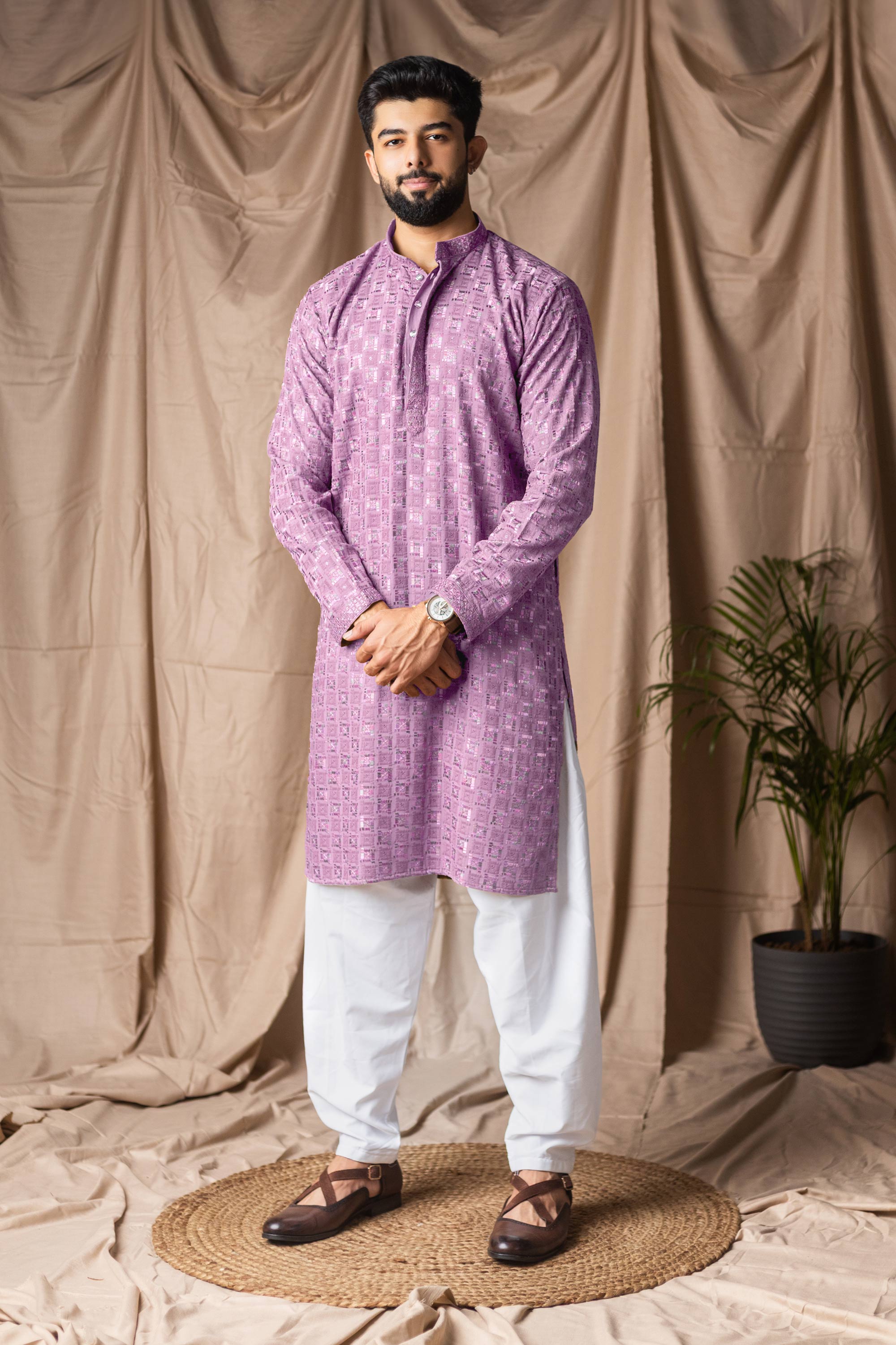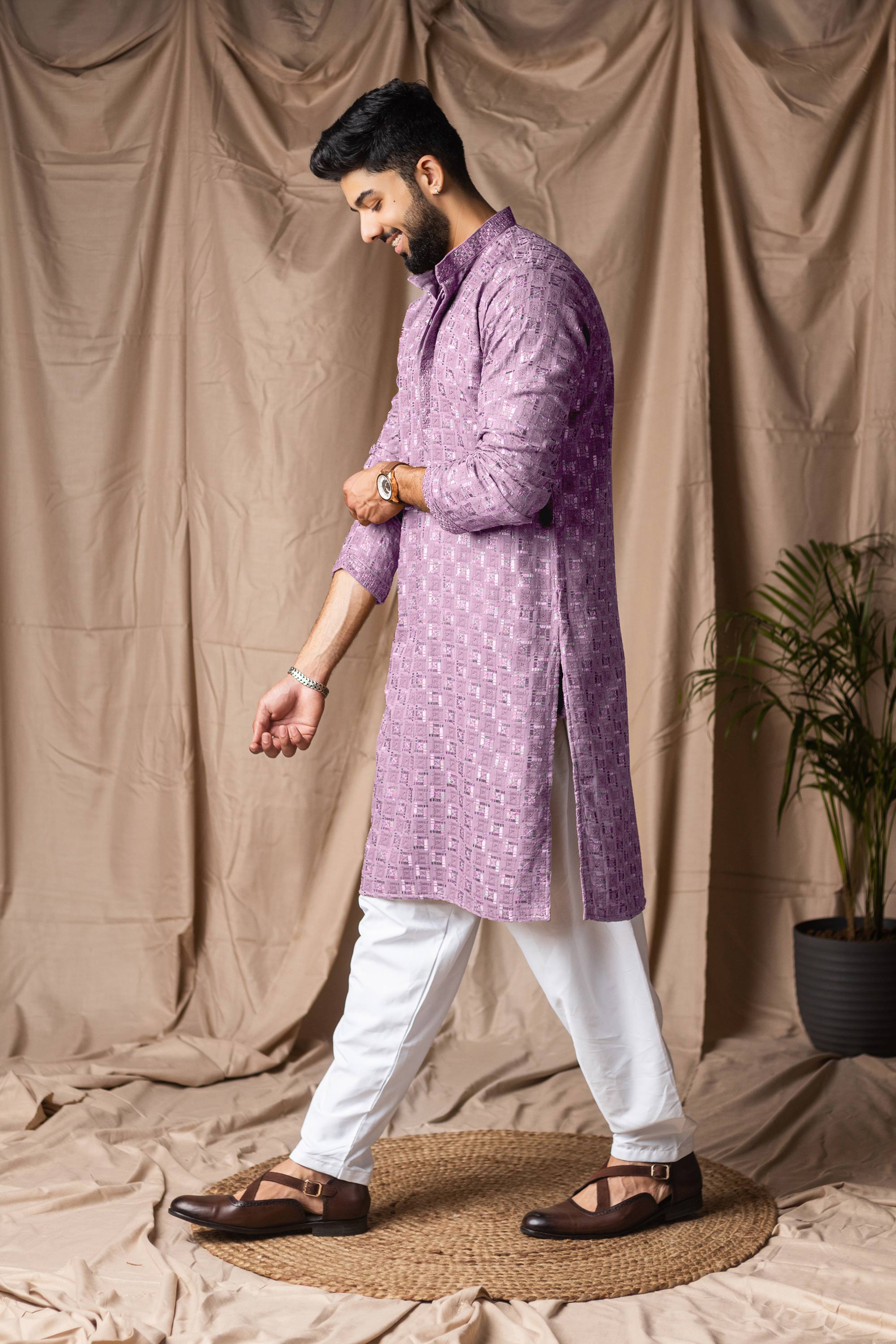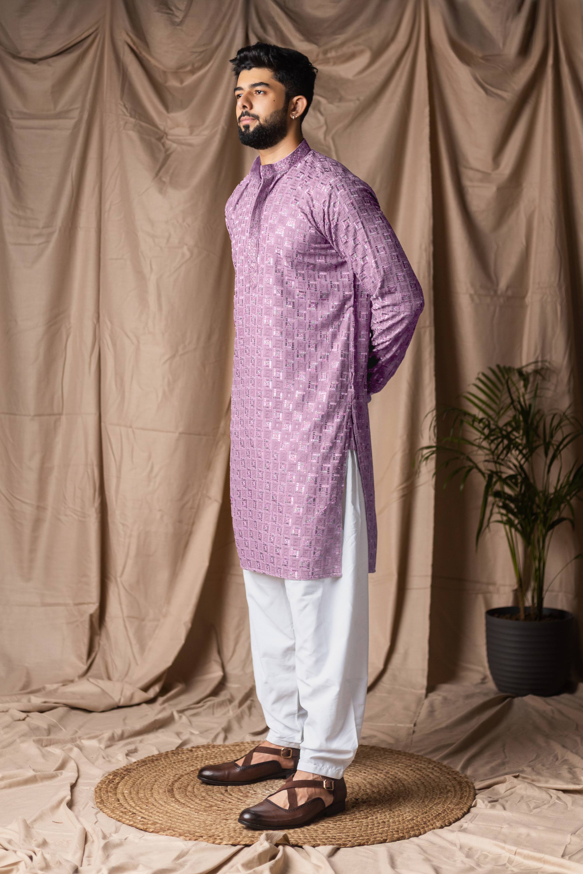 Viscose Rayon Lavender Wedding Wear Readymade Kurta Pyjama For Men