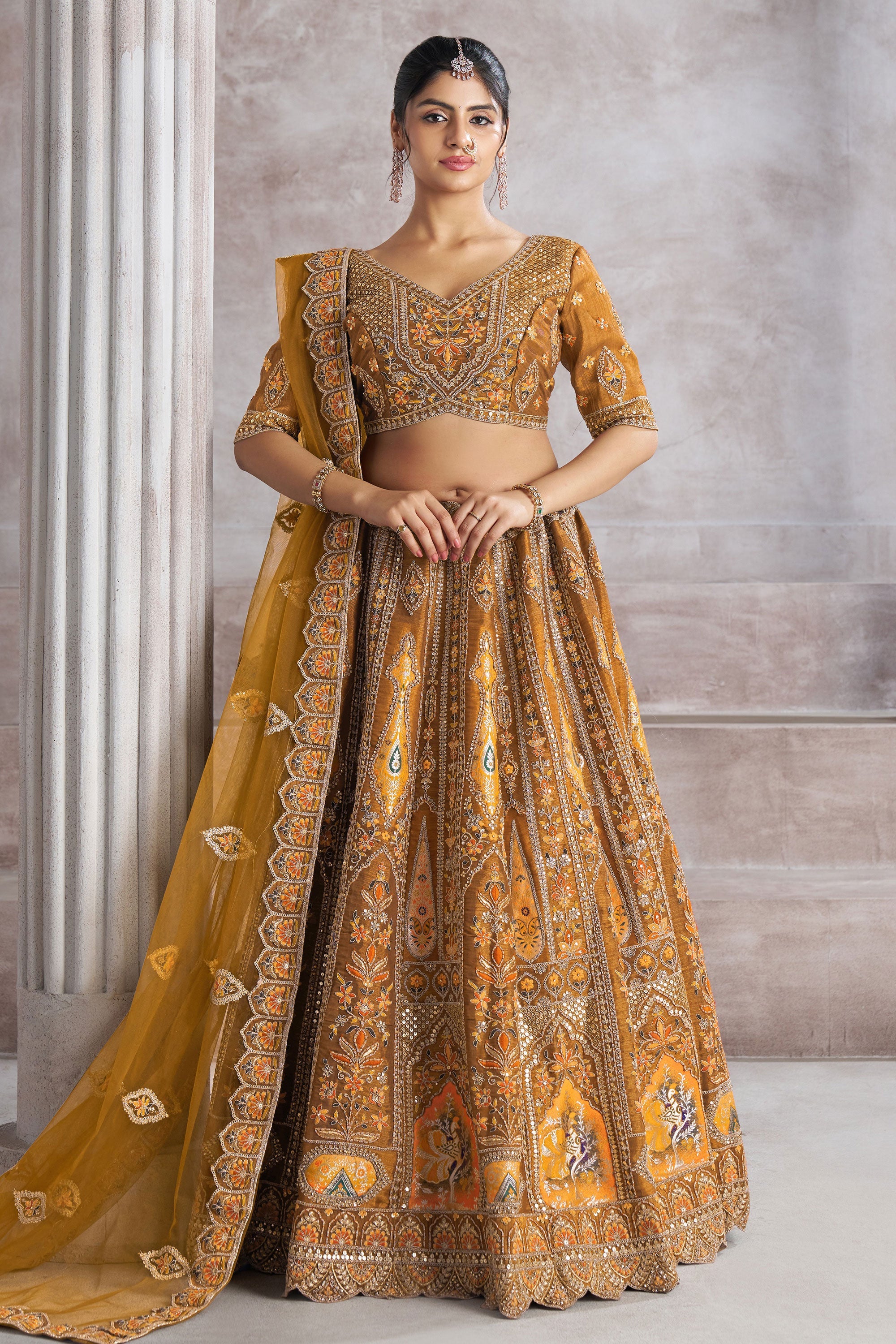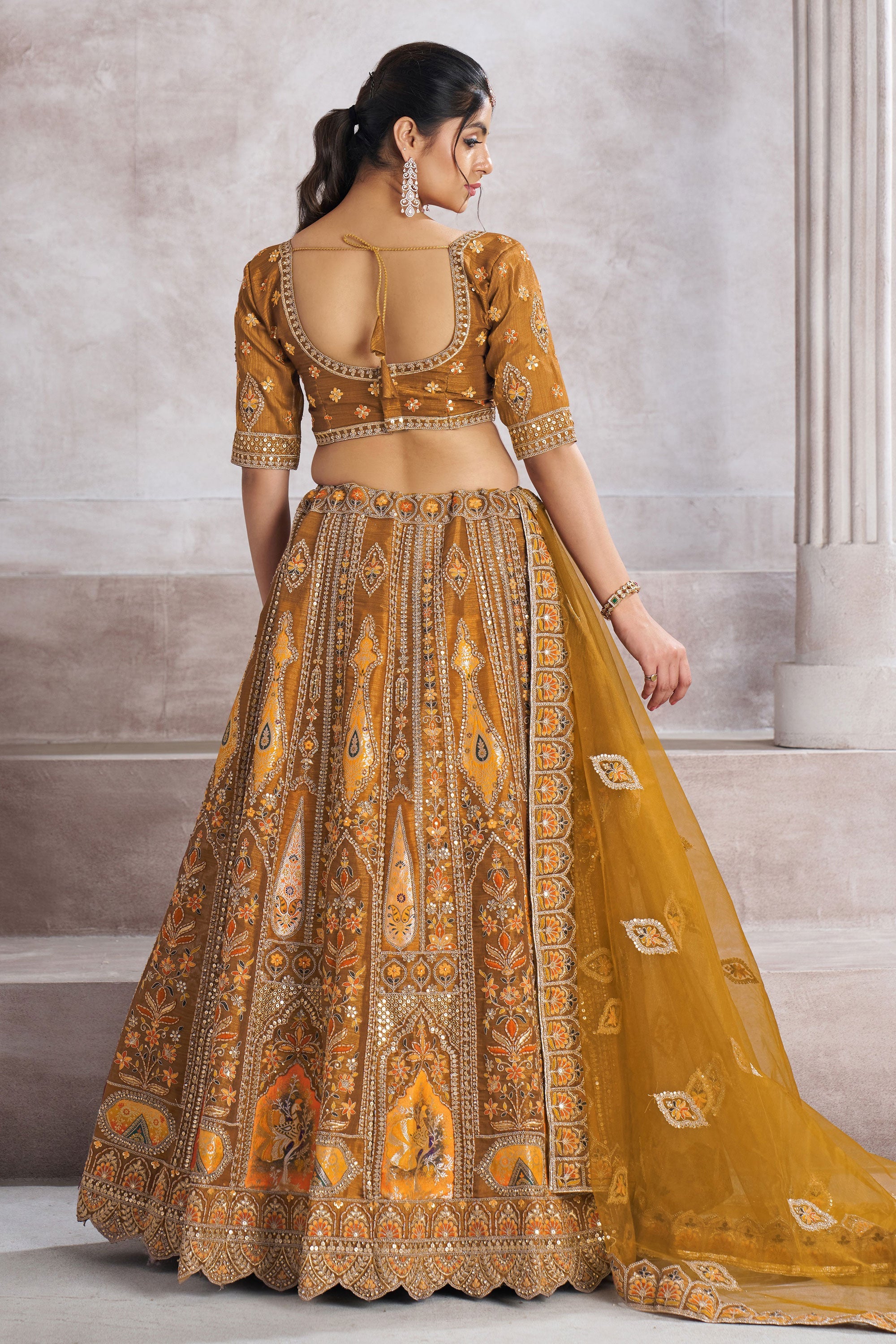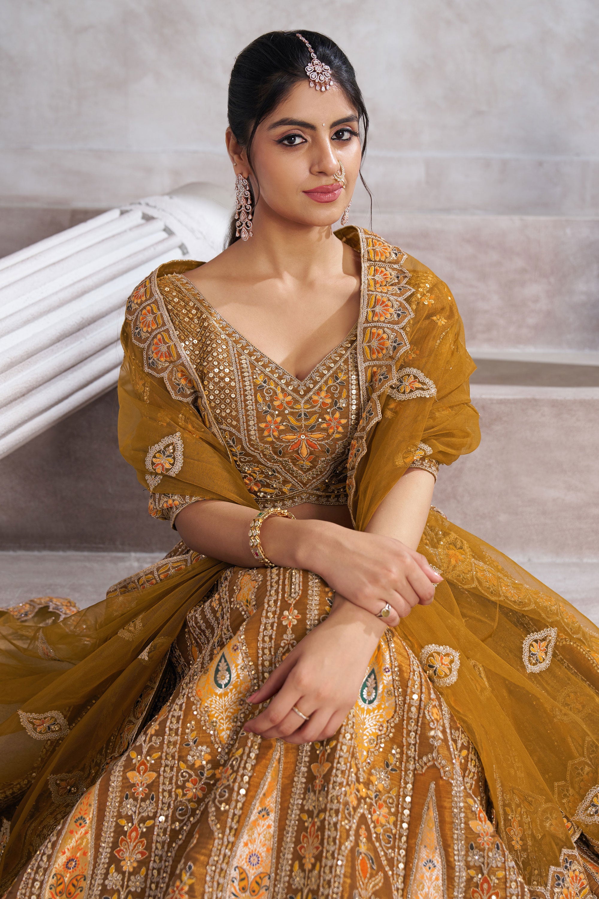 Banarasi Silk Fabric Mustard Designer 3 Piece Lehenga Choli