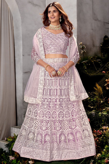 Embroidered Lavender Color Lehenga Choli In Net Fabric