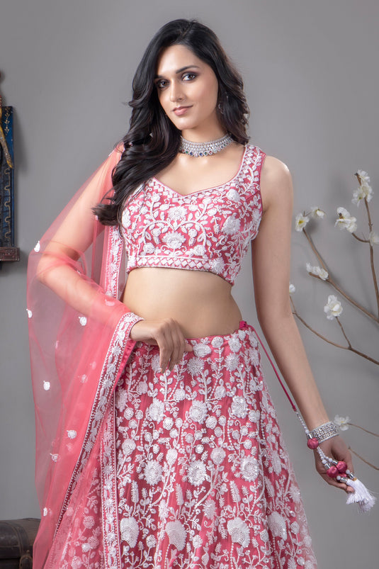 Heavy Sequins Work Lehenga Choli In Pink Color