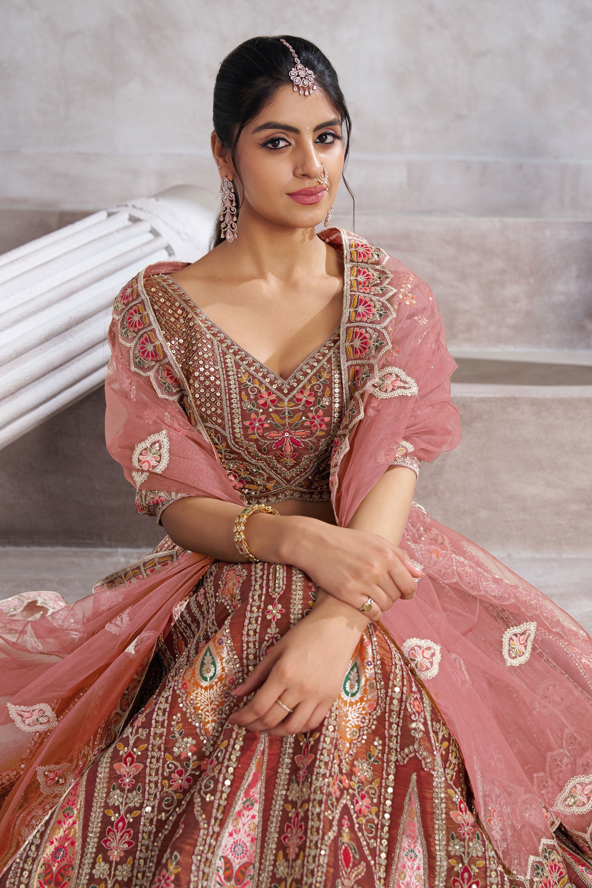 Maroon Banarasi Silk Fabric Sangeet Wear Lehenga Choli