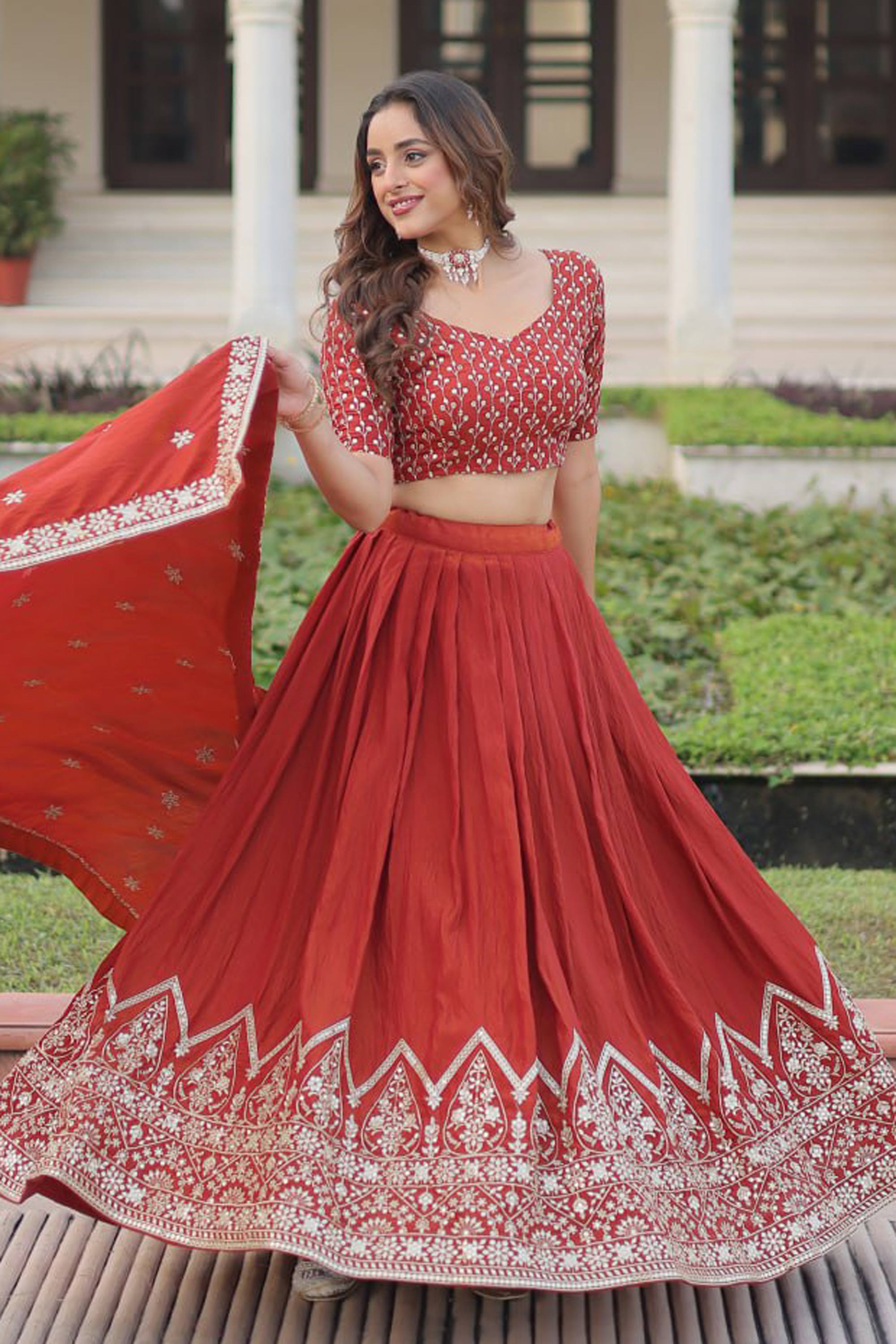 The Pretty Reach Color Art Silk Fabric Wedding Function Embroidered Designer Lehenga Choli With Dupatta is your ultimate choice for adding a touch of glamour to any festive occasion. This stunning attire features delicately detailed embroidery work on soft art silk fabric, providing both beauty and ease of wear. Its luxurious yet lightweight design makes it suitable for day or evening functions. This ensemble includes a coordinating lehenga, a well fitted choli, and a dupatta to complete your elegant look. A perfect mix of tradition and style, its a timeless addition to your ethnic wear collection.
