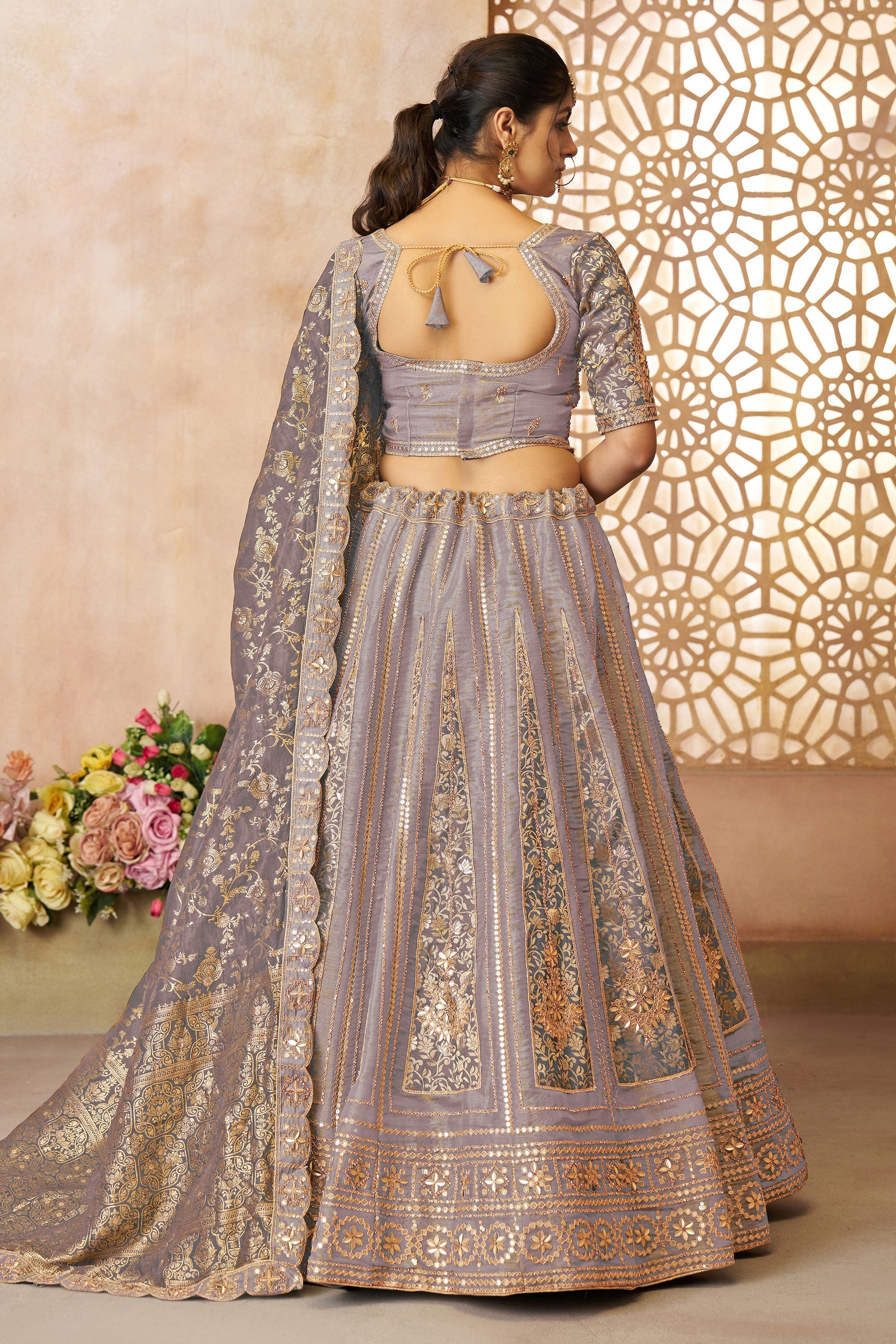 Sequins Work Lavender Tissue Fabric Wedding Wear Lehenga Choli