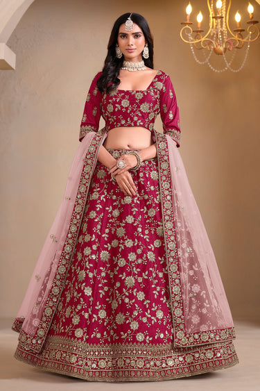 Art Silk Fabric Rani Color Sangeet Wear Lehenga Choli