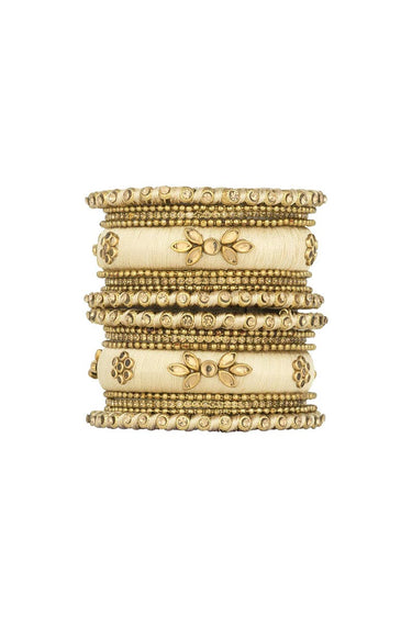 Beige Handmade Silk Thread Designer Bangle Set For Function