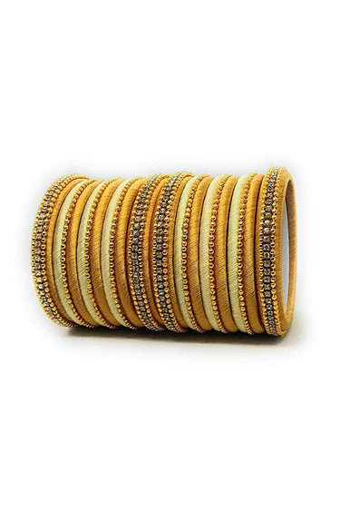 Designer Silk Thread Handmade Bangle Jewellery In Beige And Golden
