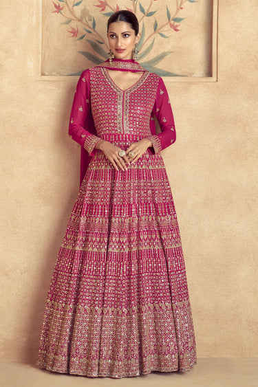 Georgette Rani Readymade Floor Touch Gown With Dupatta Set