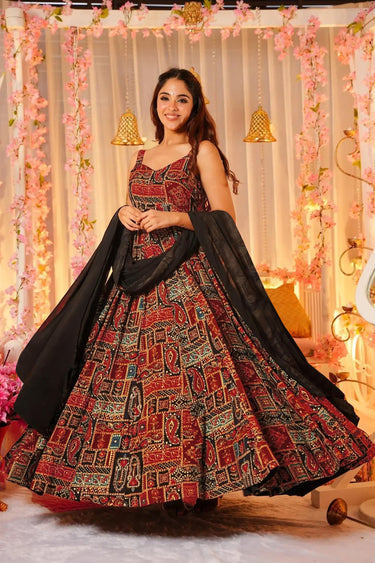 Maroon Digital Printed Floor Touch Readymade Anarkali Style Gown With Dupatta