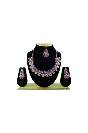 Alloy Material Captivating Purple Color Necklace With Earrings and Mang Tikka
