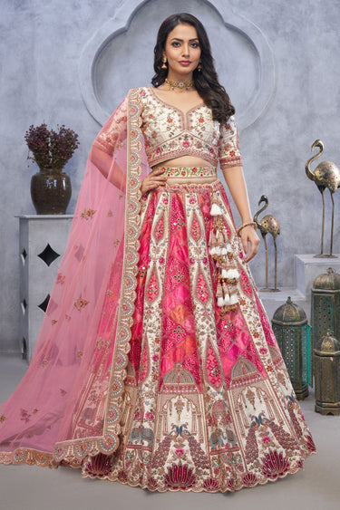 Alluring Organza Silk Beige Wedding Lehenga Choli