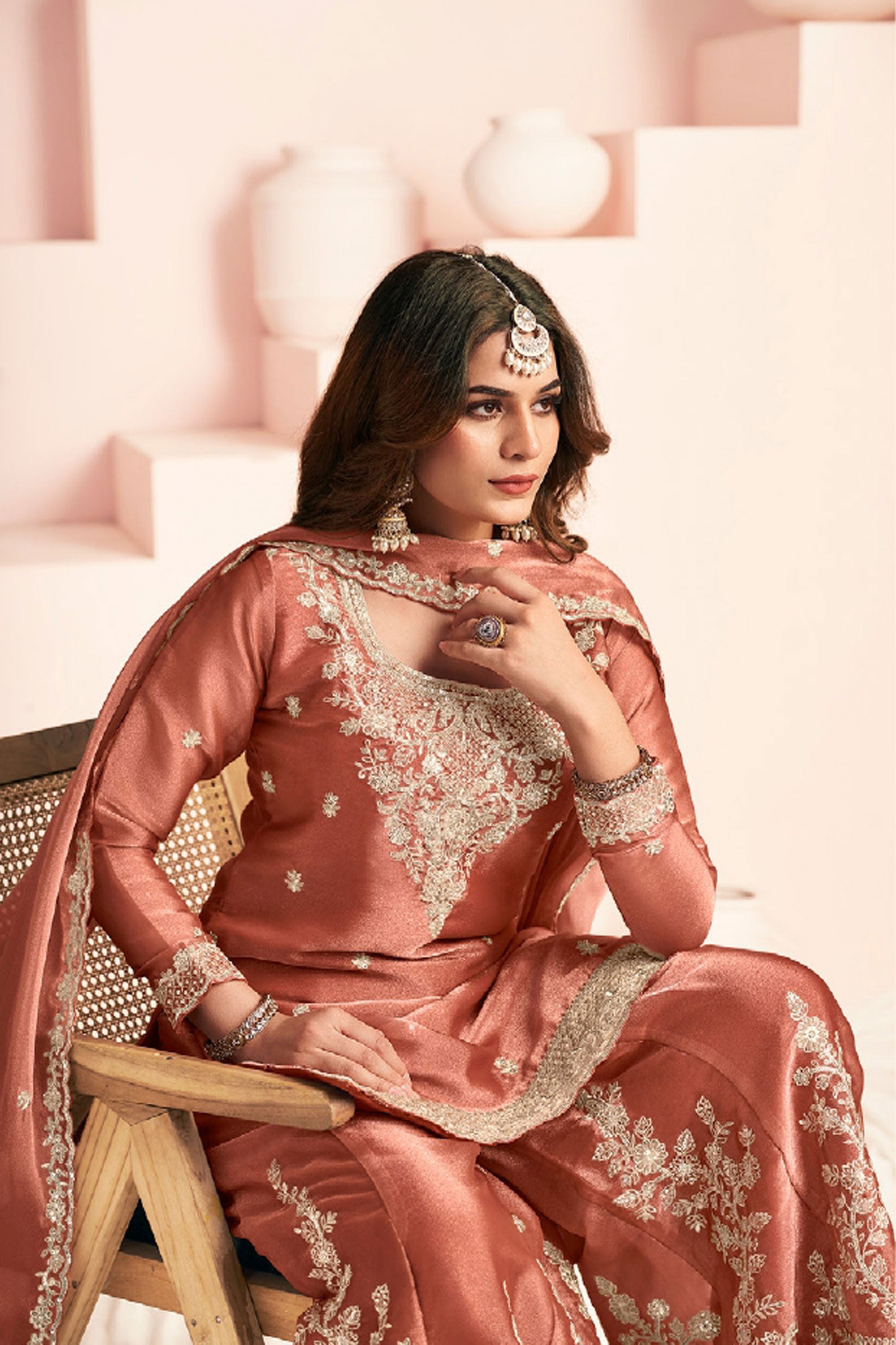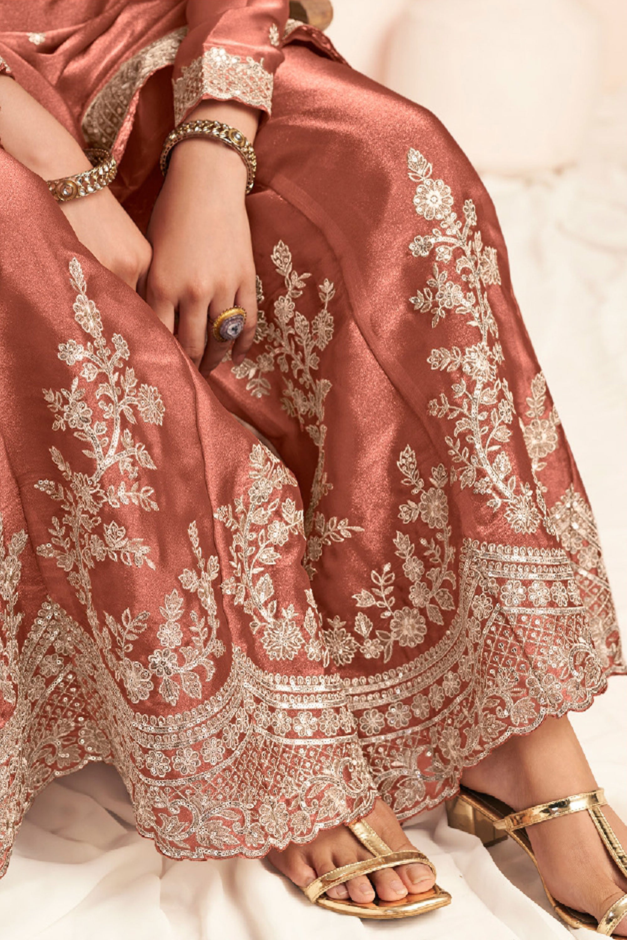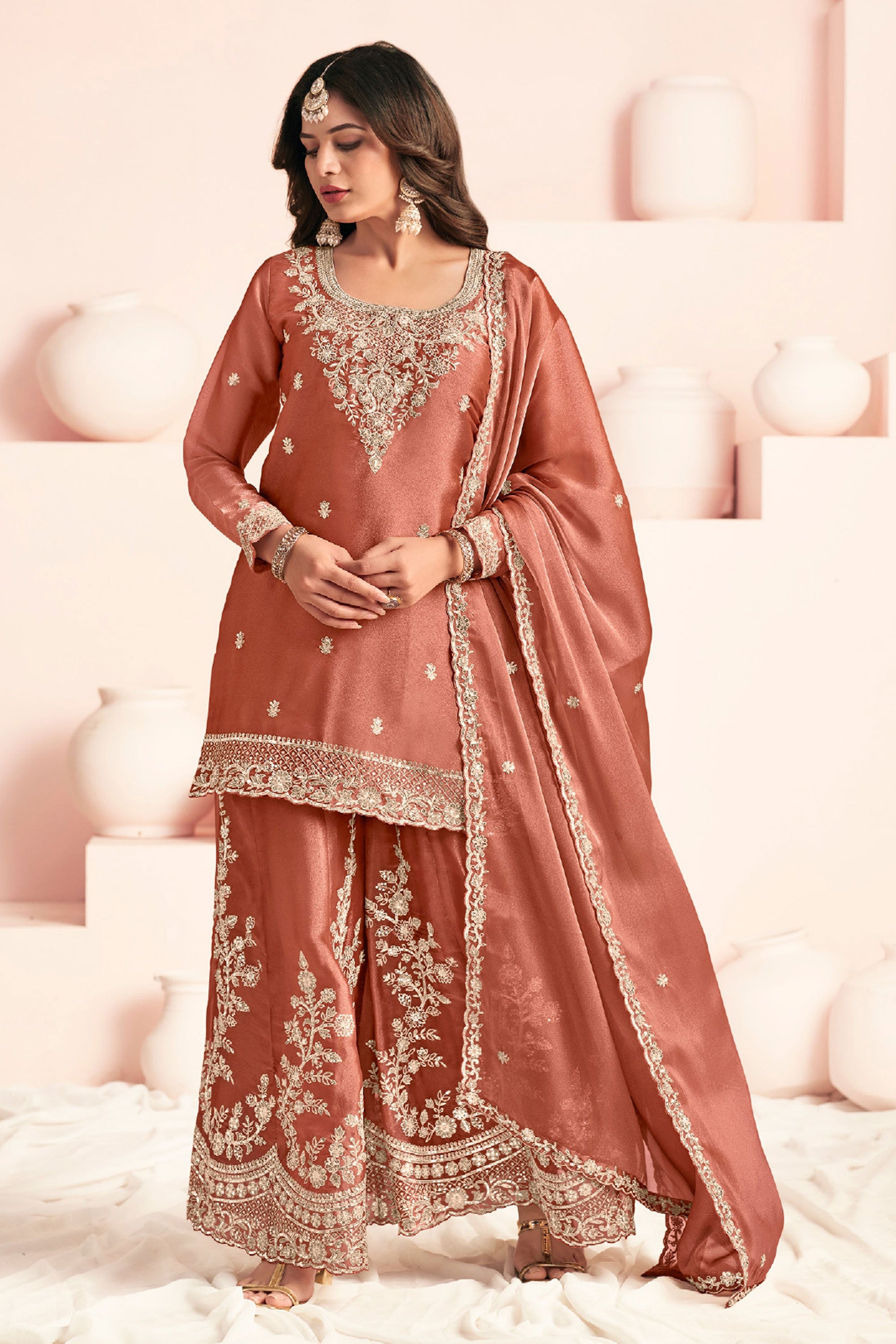 Step into elegance with this beautifully designed Readymade Palazzo Suit, perfect for special functions and festive occasions. Crafted from premium Art Silk fabric, the top features delicate embroidery work that adds a touch of sophistication and charm to the outfit. It is paired with a comfortable Art Silk palazzo bottom and a graceful Art Silk dupatta, creating a stylish and well-coordinated ethnic look. This outfit offers the perfect blend of traditional beauty and modern comfort, making it an ideal choice for celebrations and gatherings. Note: Due to digital photography and different screen settings, slight color variations may occur.