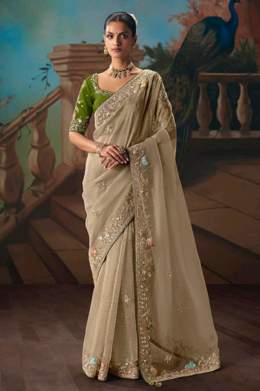 Art Silk Embroidered Beige Saree For Wedding Wear
