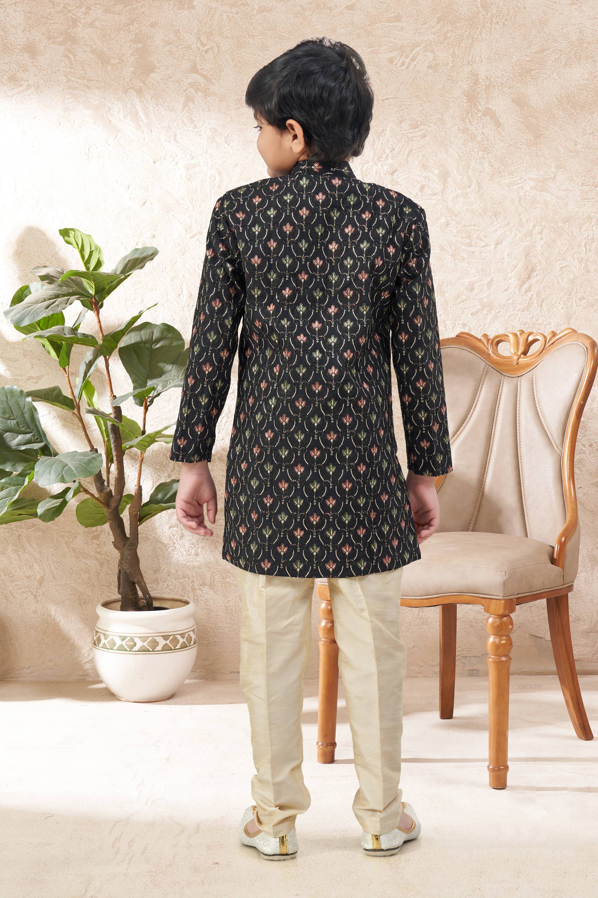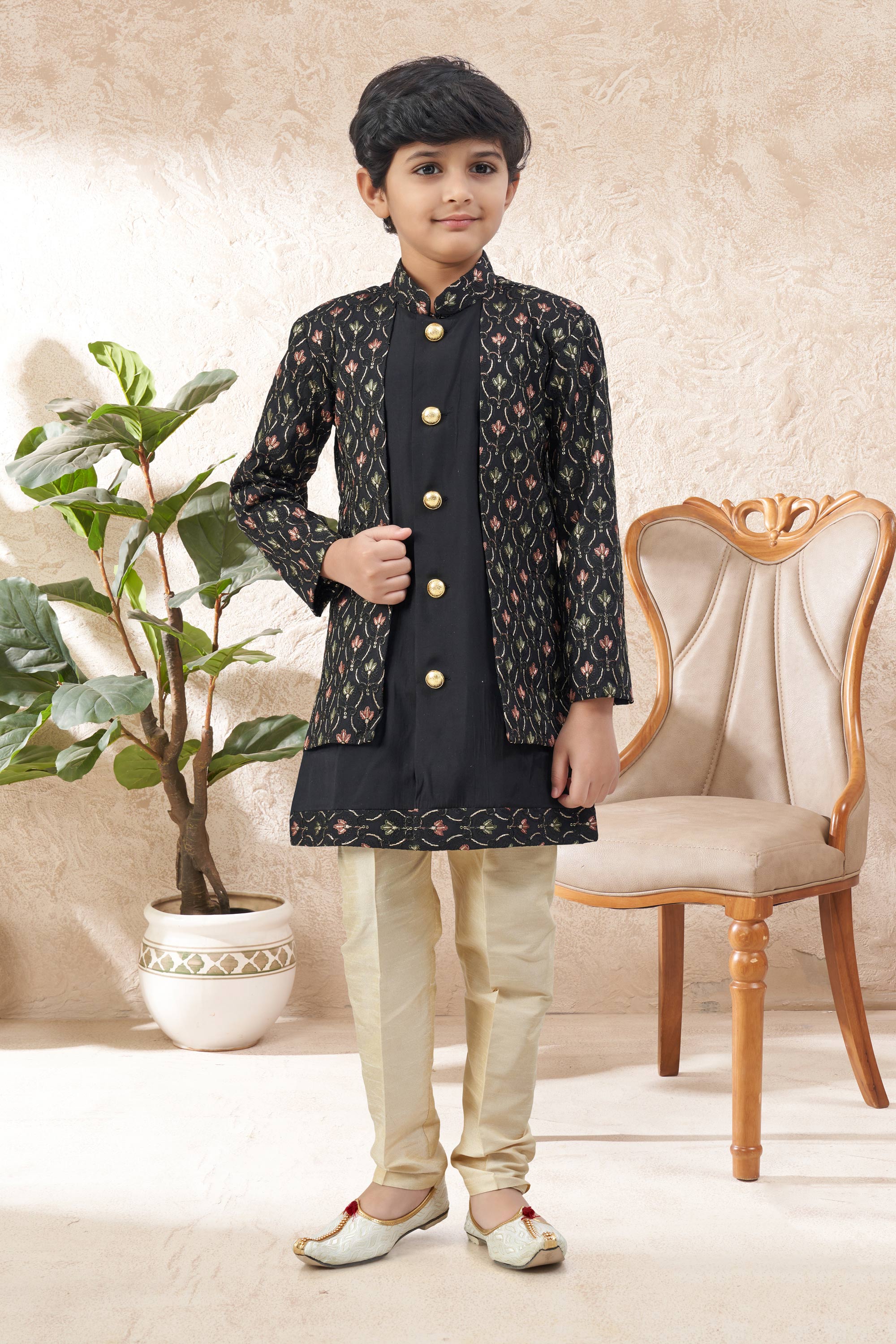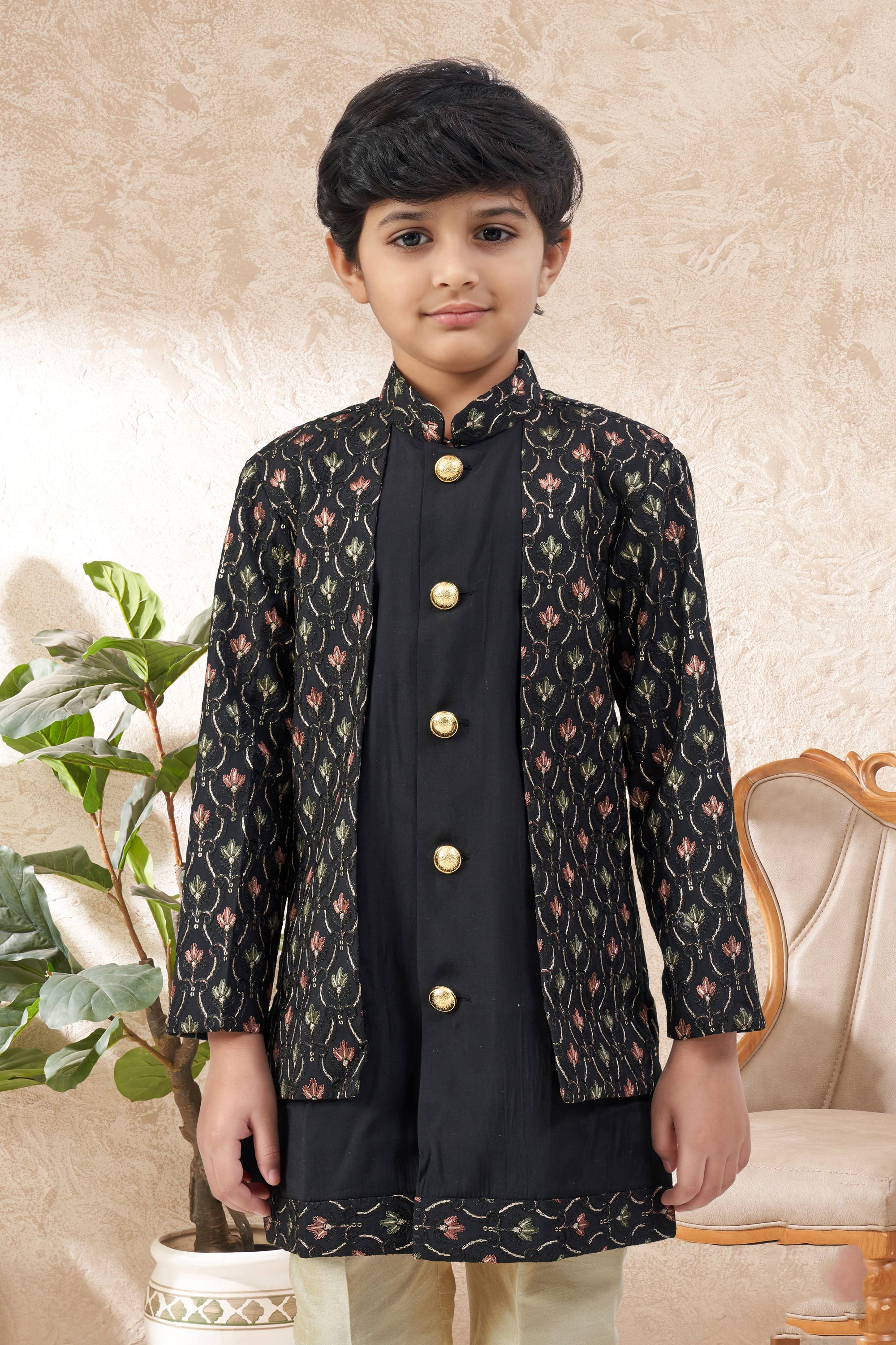 Art Silk Fabric Black Boys Readymade Indo Western For Festive Wear