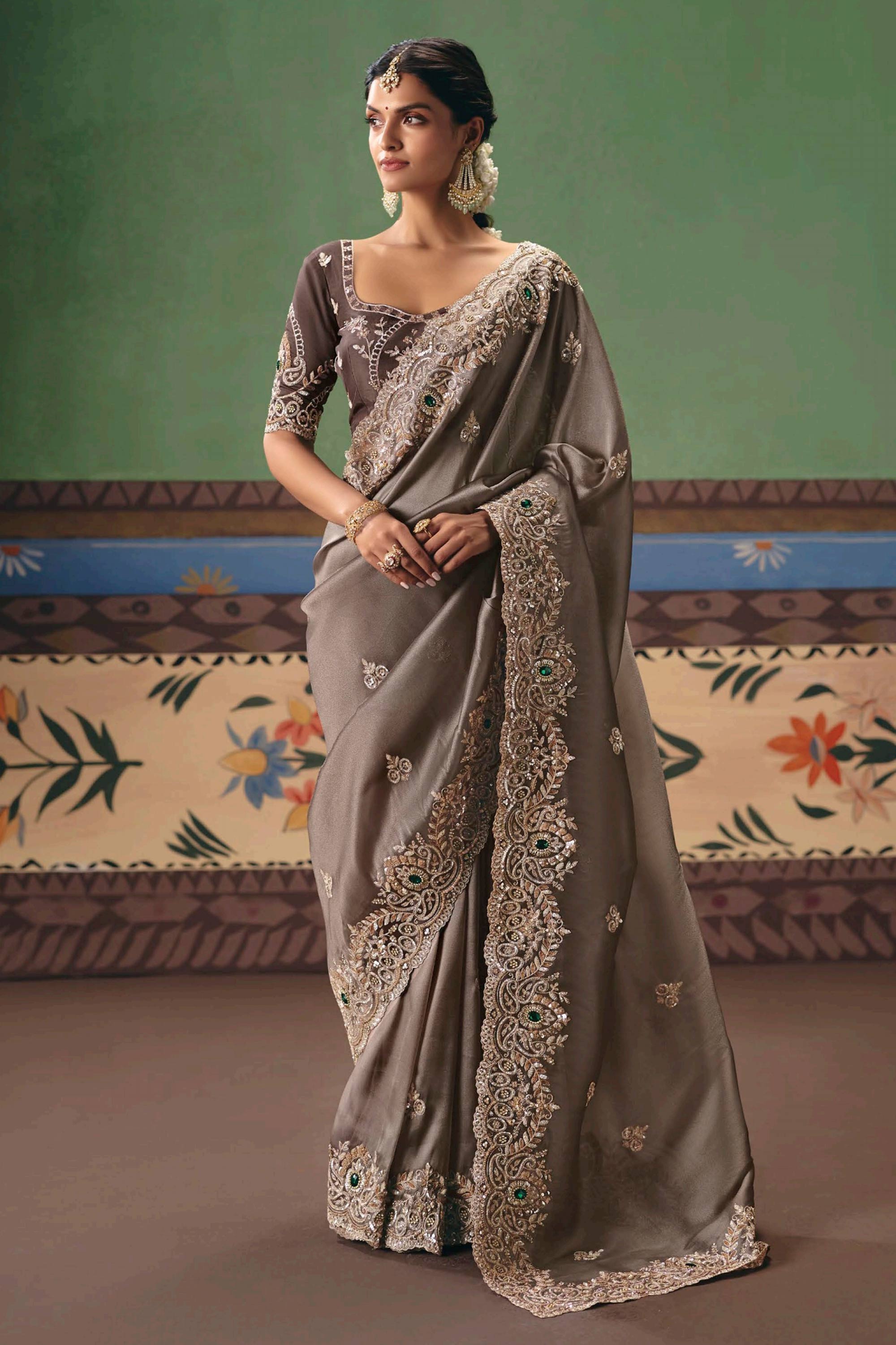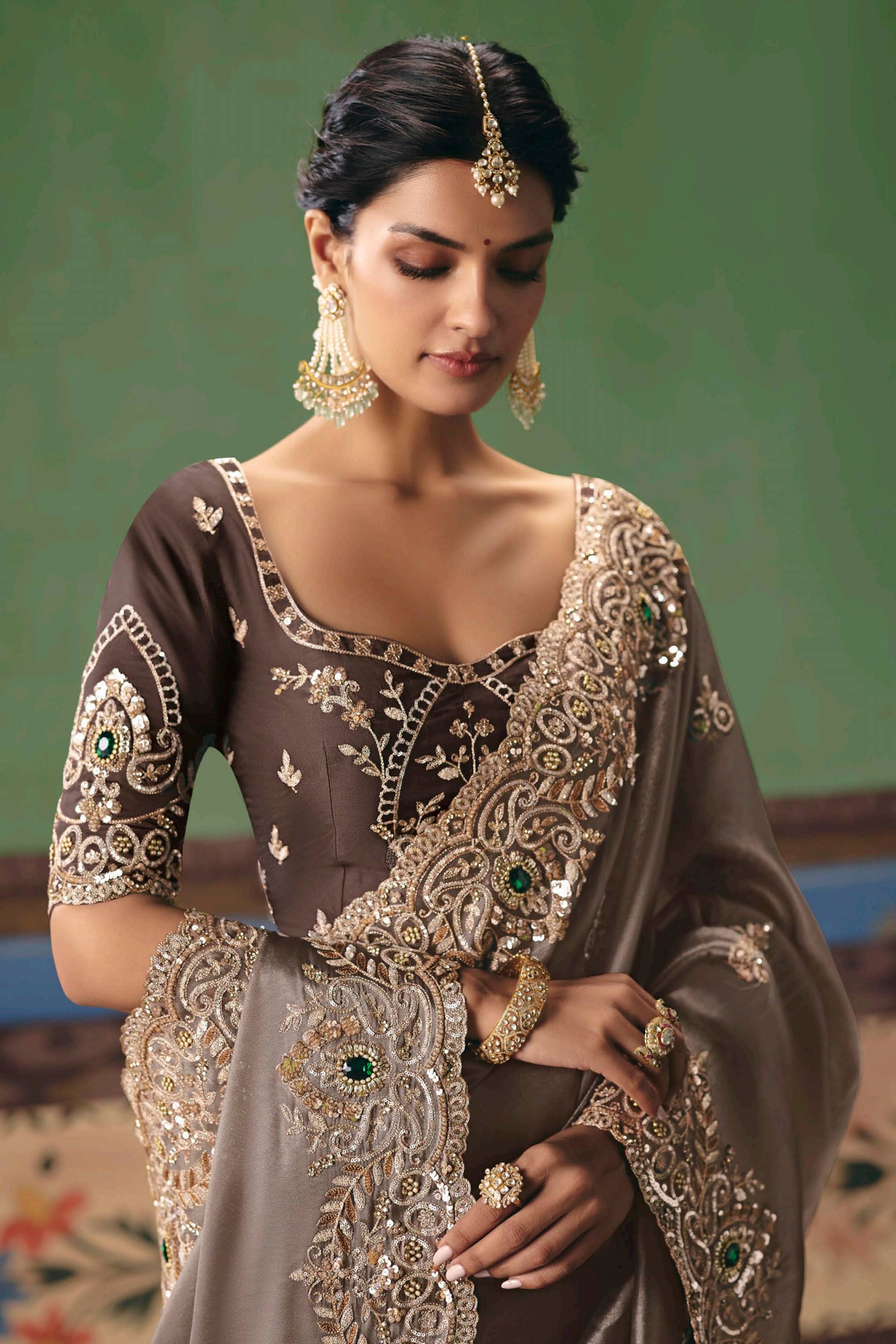 Art Silk Fabric Brown Function Wear Designer Saree