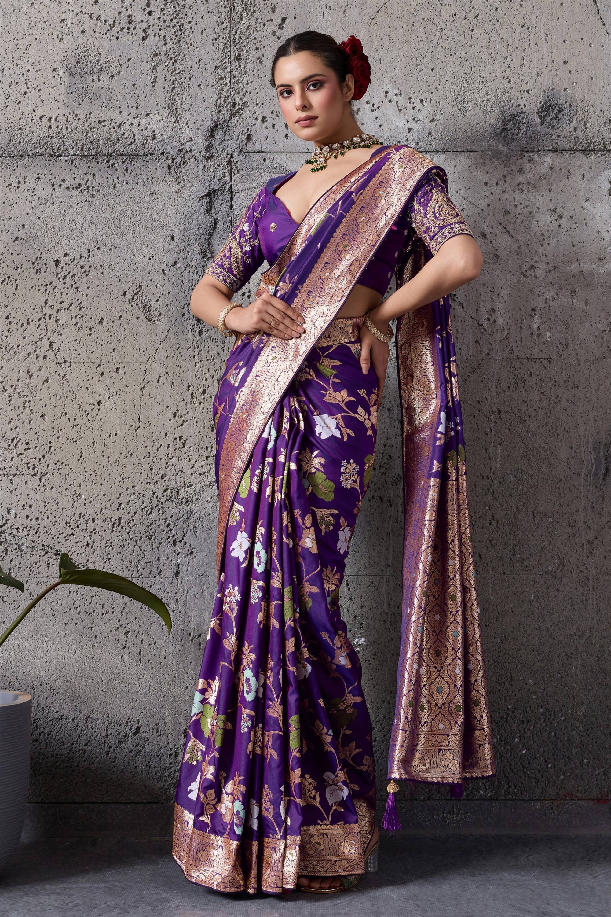 Art Silk Fabric Weaving Work Purple Saree For Wedding Wear