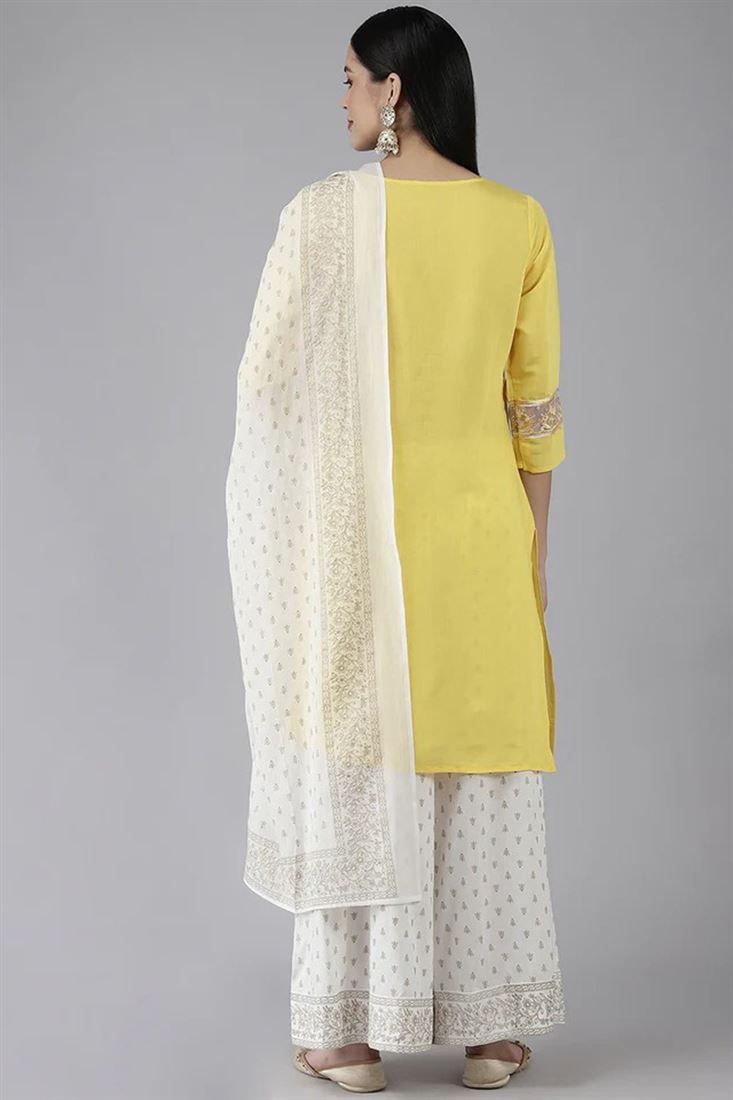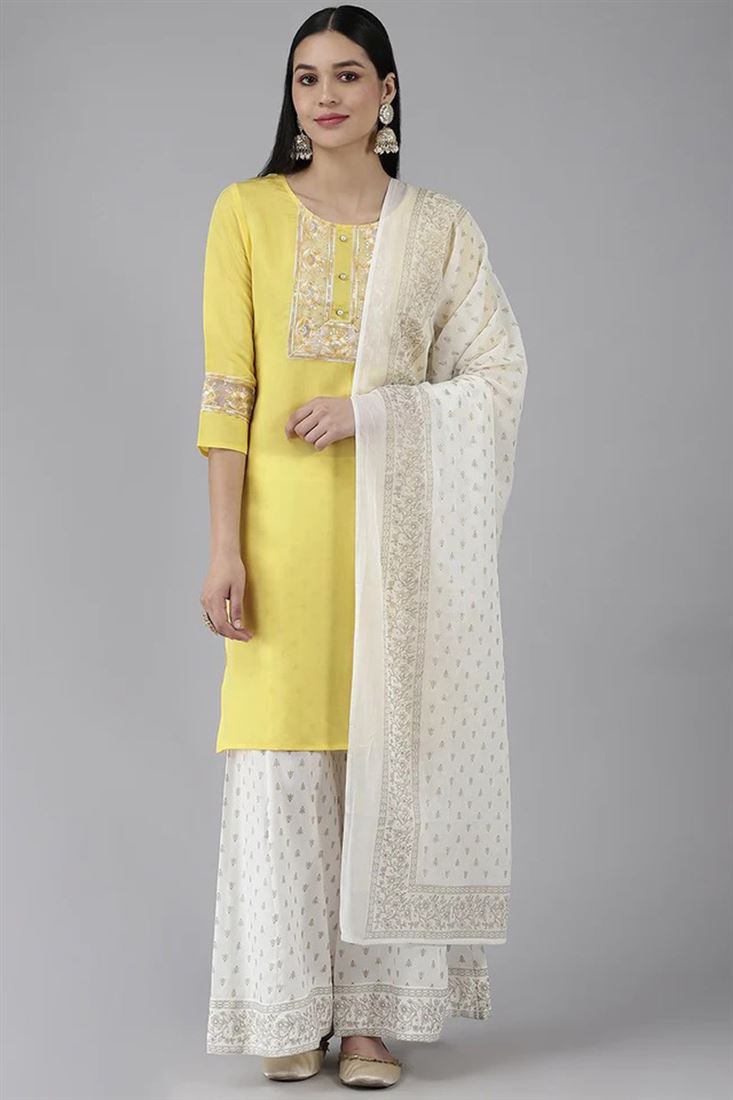 Art Silk Fabric Yellow Color Excellent Top Bottom Dupatta