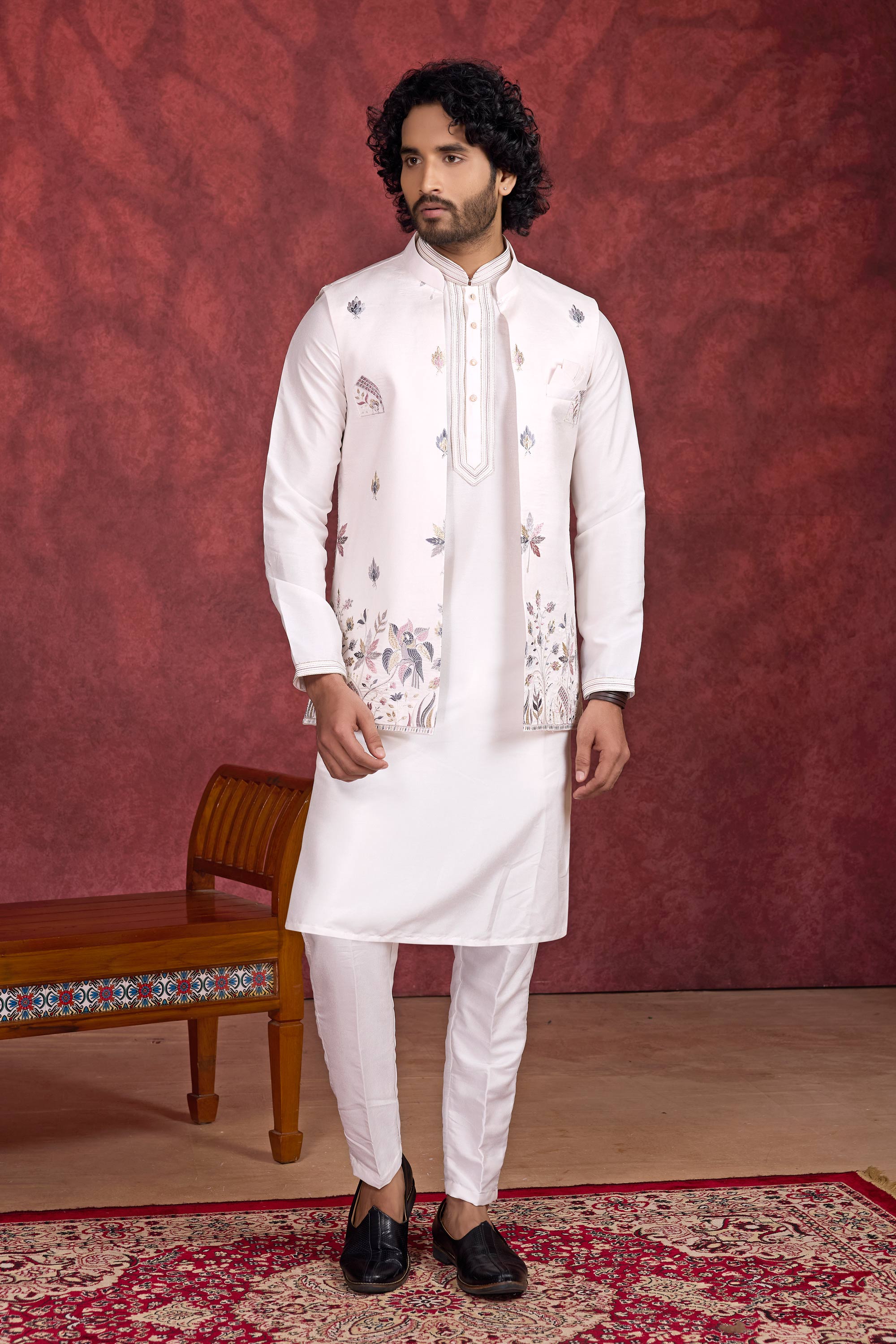 Transform your look for weddings and special occasions with this Color Art Silk Fabric Readymade Kurta and Aligadhi Pant ensemble. Designed with an elegant embroidered jacket, this set is both traditional and contemporary, offering comfort and style in equal measure. The lightweight and breathable fabric ensures all-day wearability, making it perfect for festivities or formal events. The refined embroidery adds sophistication, making you stand out effortlessly. Tailored to perfection, this attire ensures a perfect fit and ease of movement for celebratory moments.