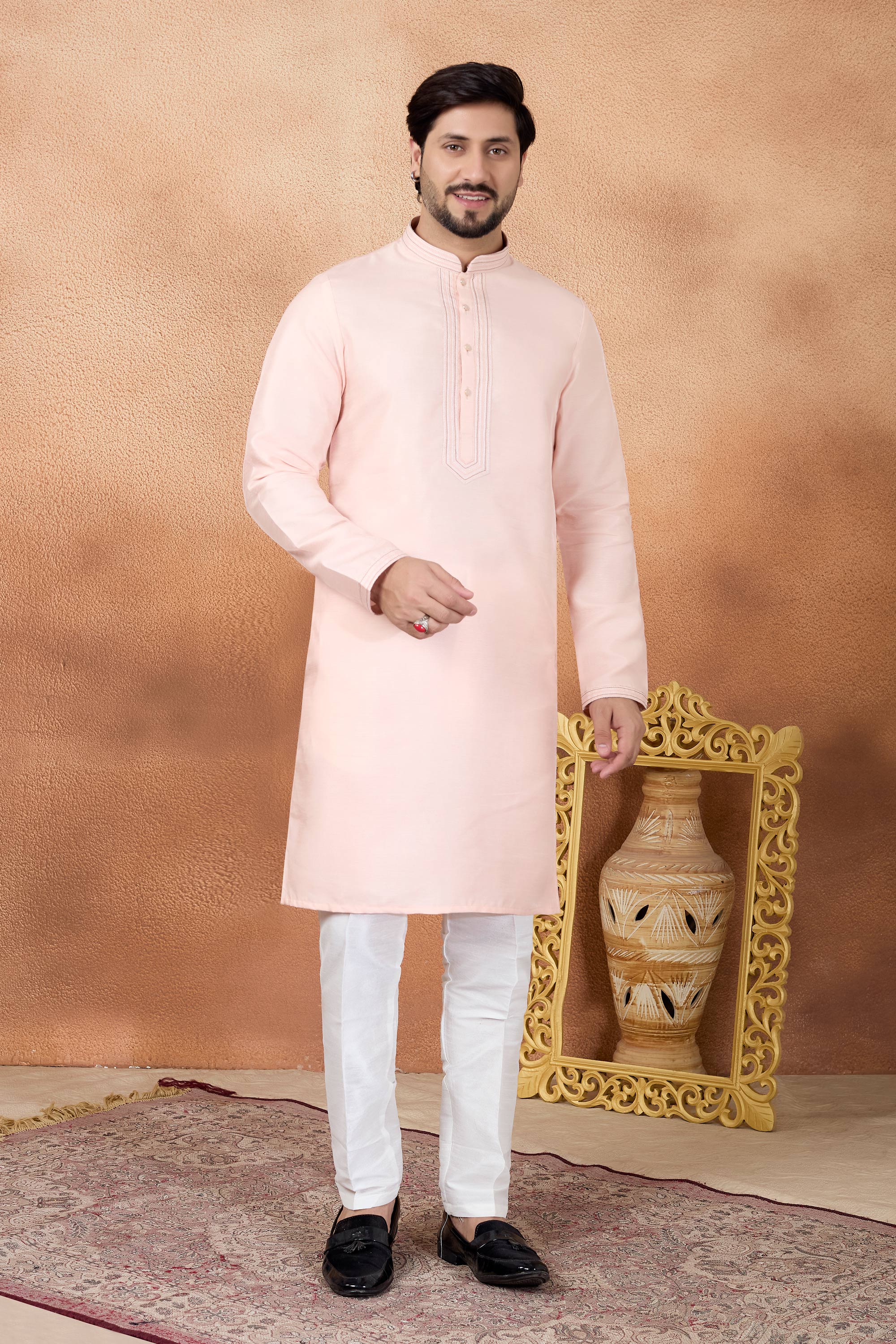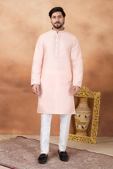 Art Silk Pink Men Readymade Kurta Pyjama For Function Wear