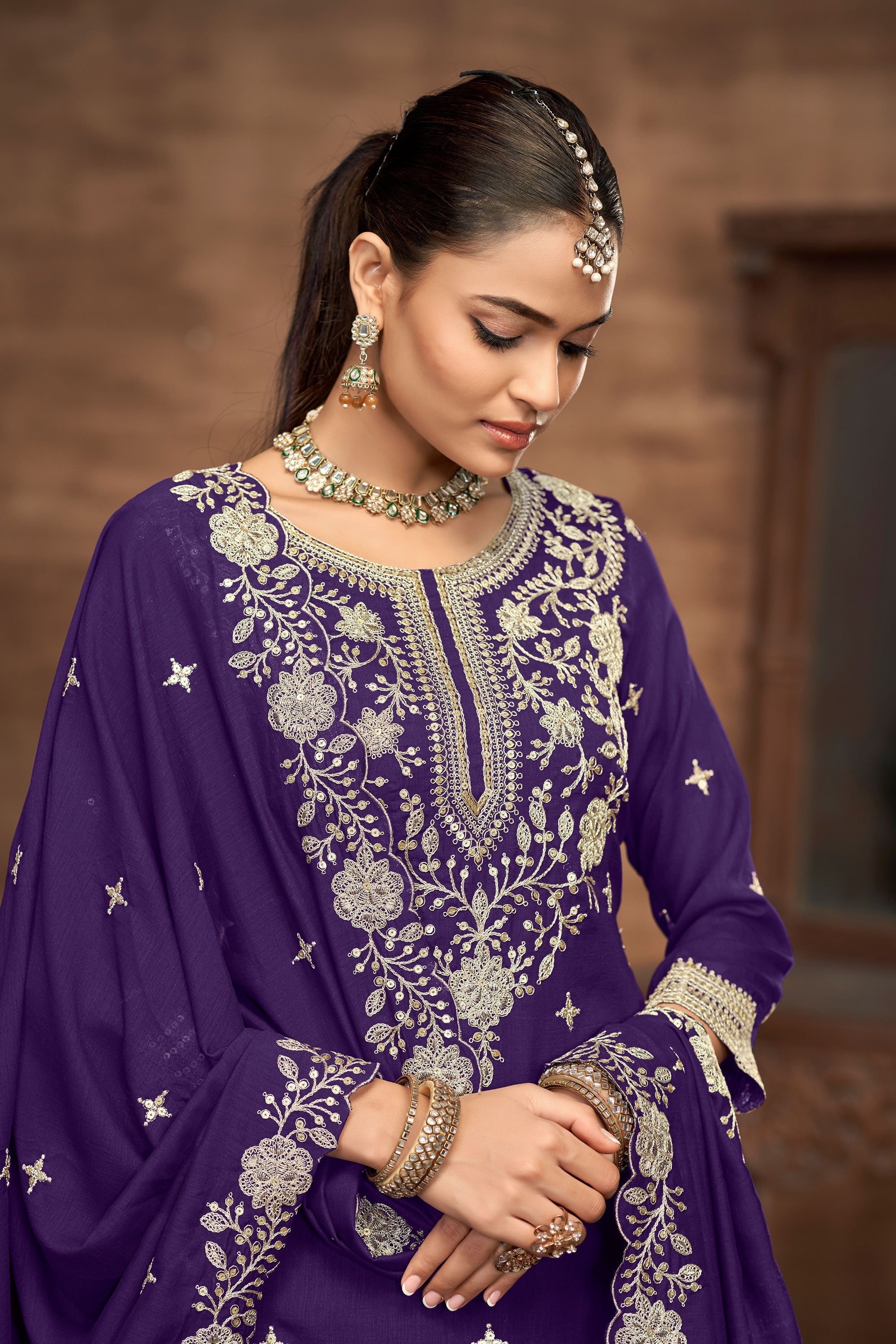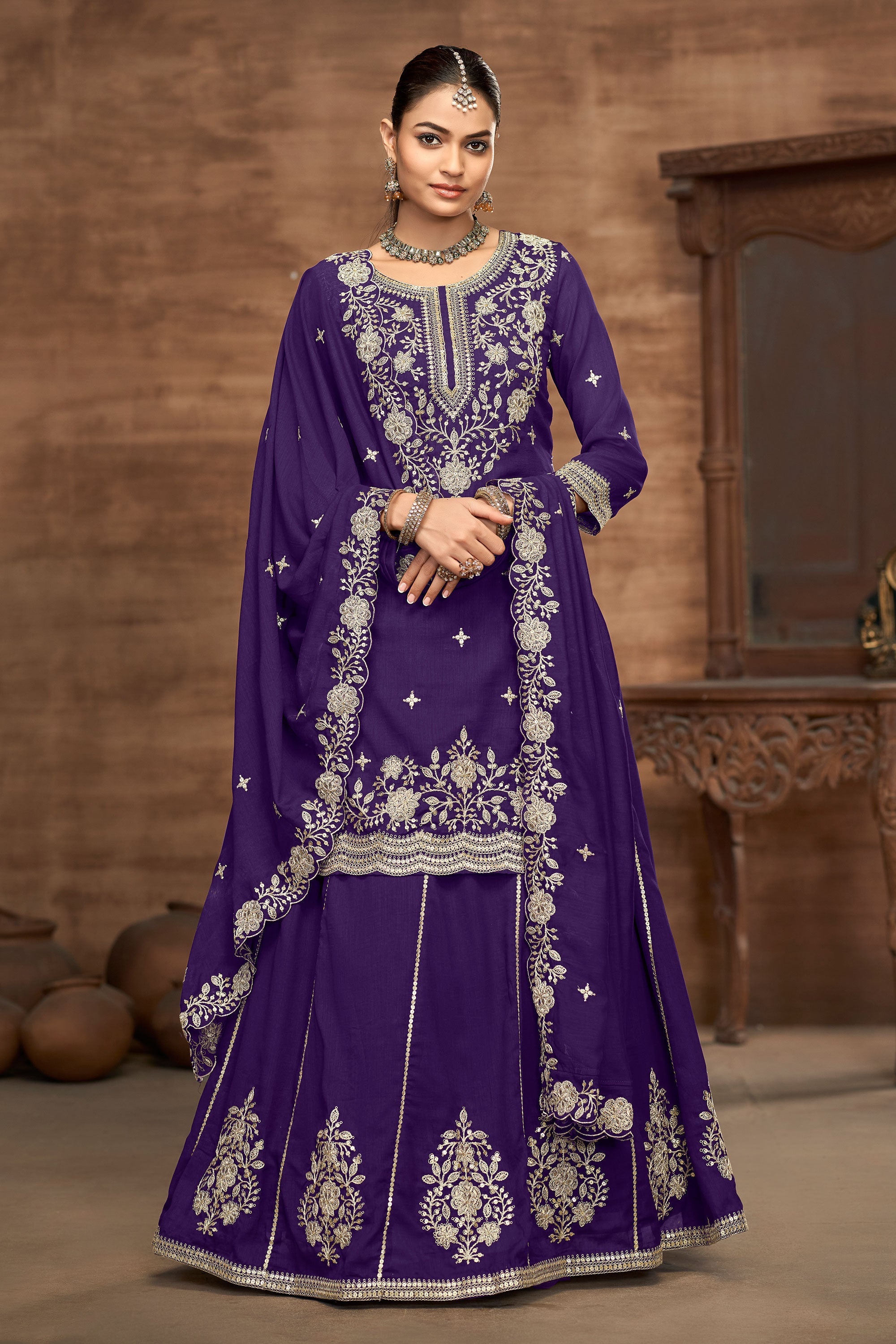 Art Silk Purple Sangeet Wear Readymade Sharara Style Lehenga