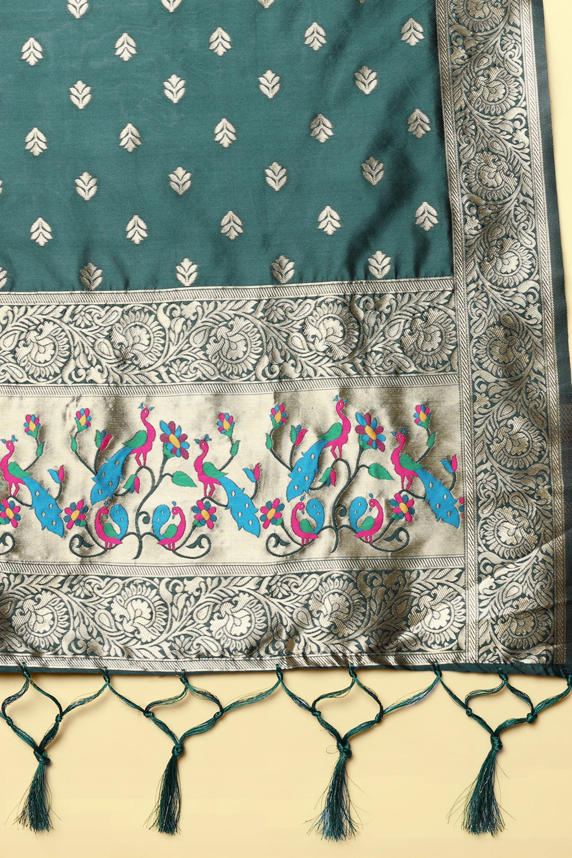 Attractive Dark Green Jacquard Silk Weaving Work Salwar Suit With Banarasi Silk Dupatta