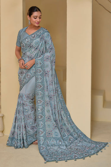 Banarasi Fabric Occasion Wear Grey Sequins Work Saree