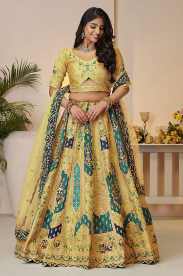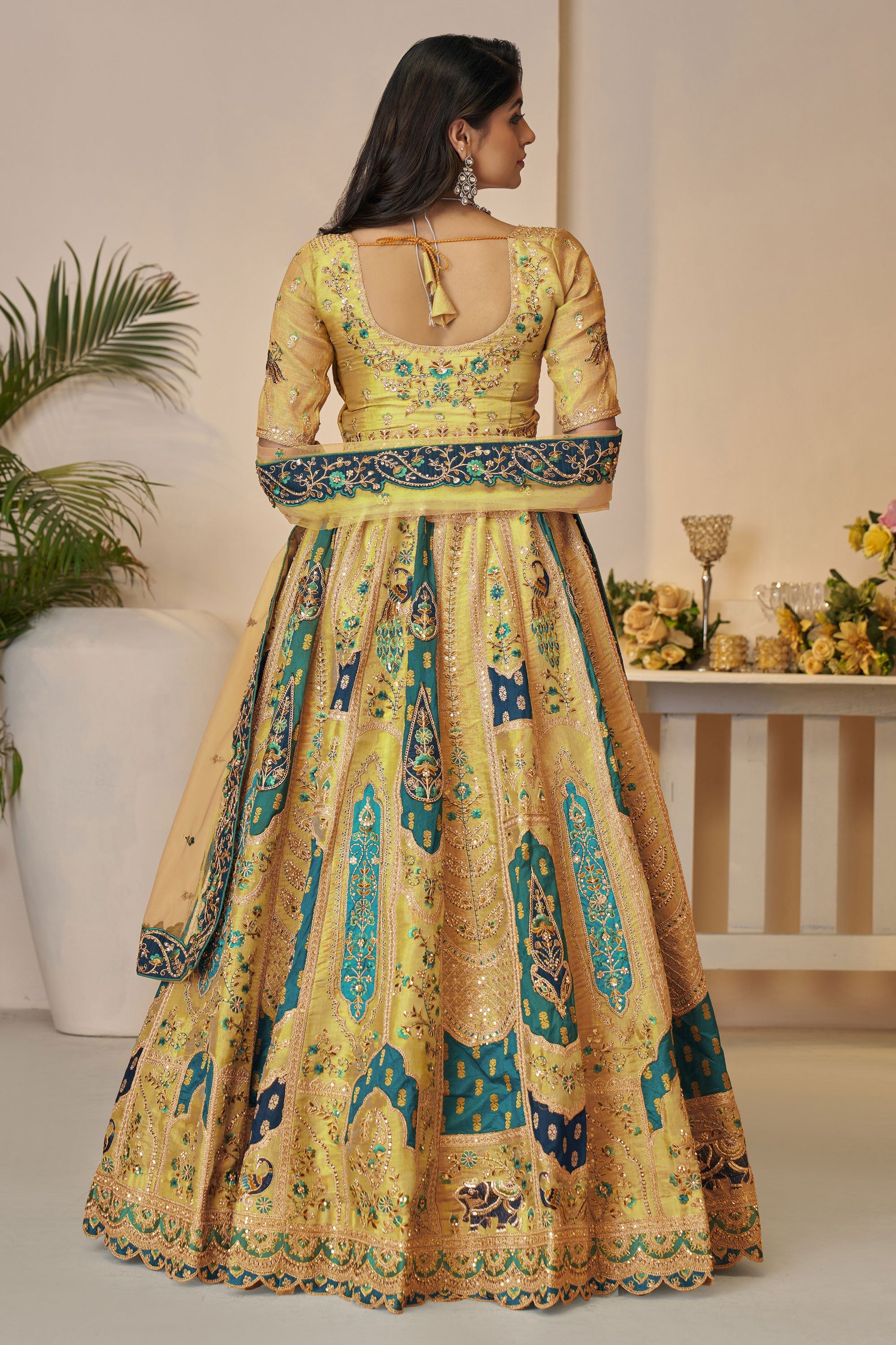 Banarasi Silk Fabric Yellow Occasion Wear Lehenga Choli