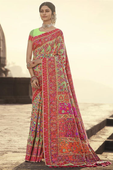 Banarasi Style Silk Fabric Brilliant Saree In Sea Green Color