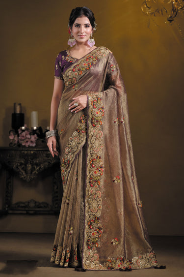 Banarasi Wine Magnificent Sequins Work Saree
