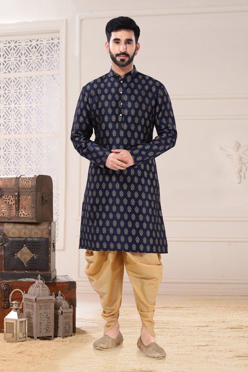 Beautiful Blue Color Wedding Wear Readymade Kurta Pyjama For Men In Jacquard Fabric