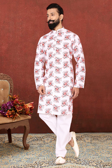 Beautiful Off White Color Wedding Wear Readymade Kurta Pyjama For Men In Cotton Fabric