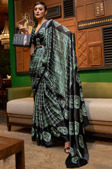 Beguiling Digital Printed Work On Black Color Crepe Fabric Party Wear Saree