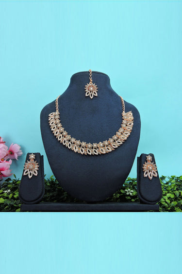 Beguiling Grey Color Alloy Material Necklace Set Earrings And Mang Tikka For Women