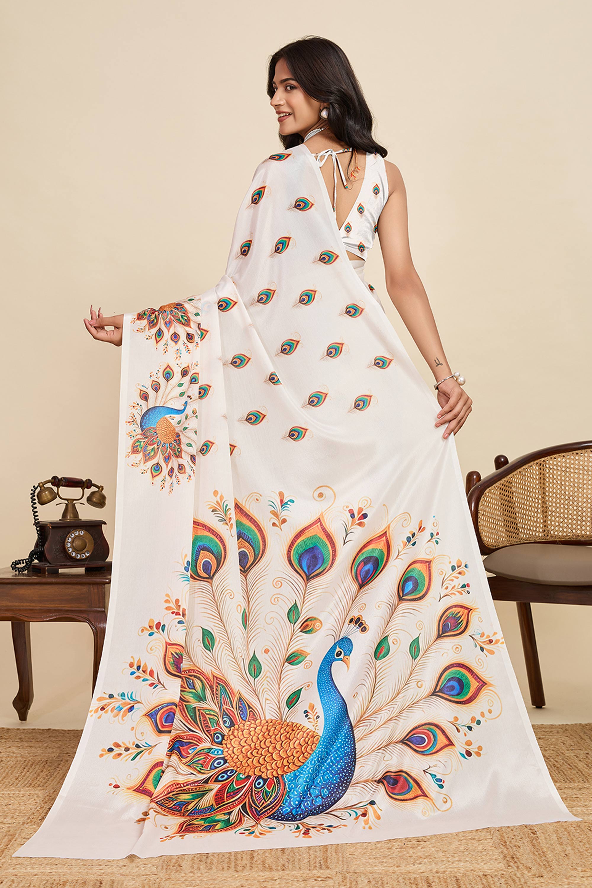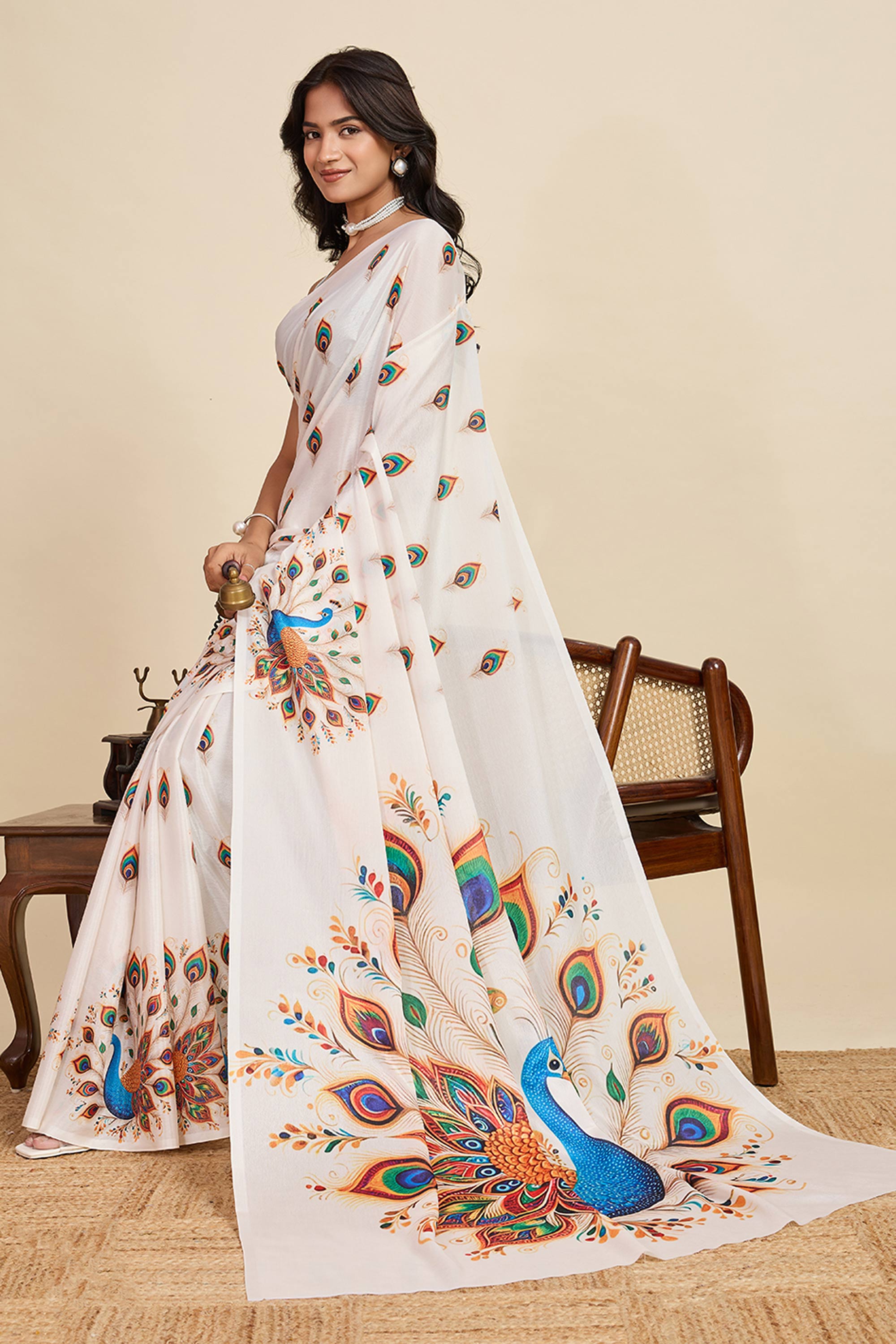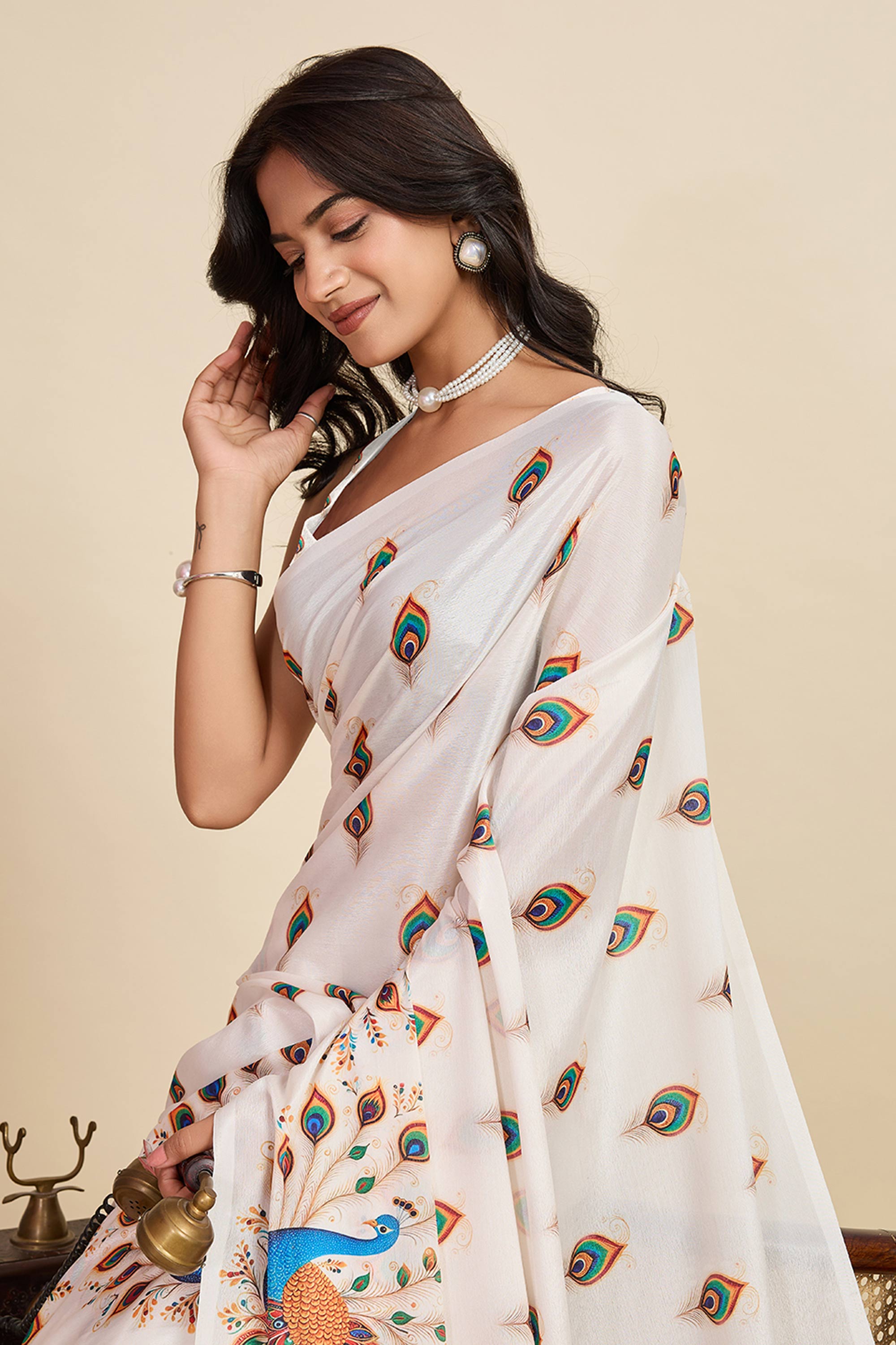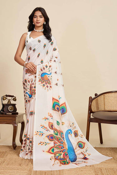 Beige Casual Wear Chinon Digital Printed Saree