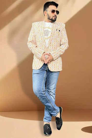 Beige Color Cotton Fabric Engrossing Blazer For Men