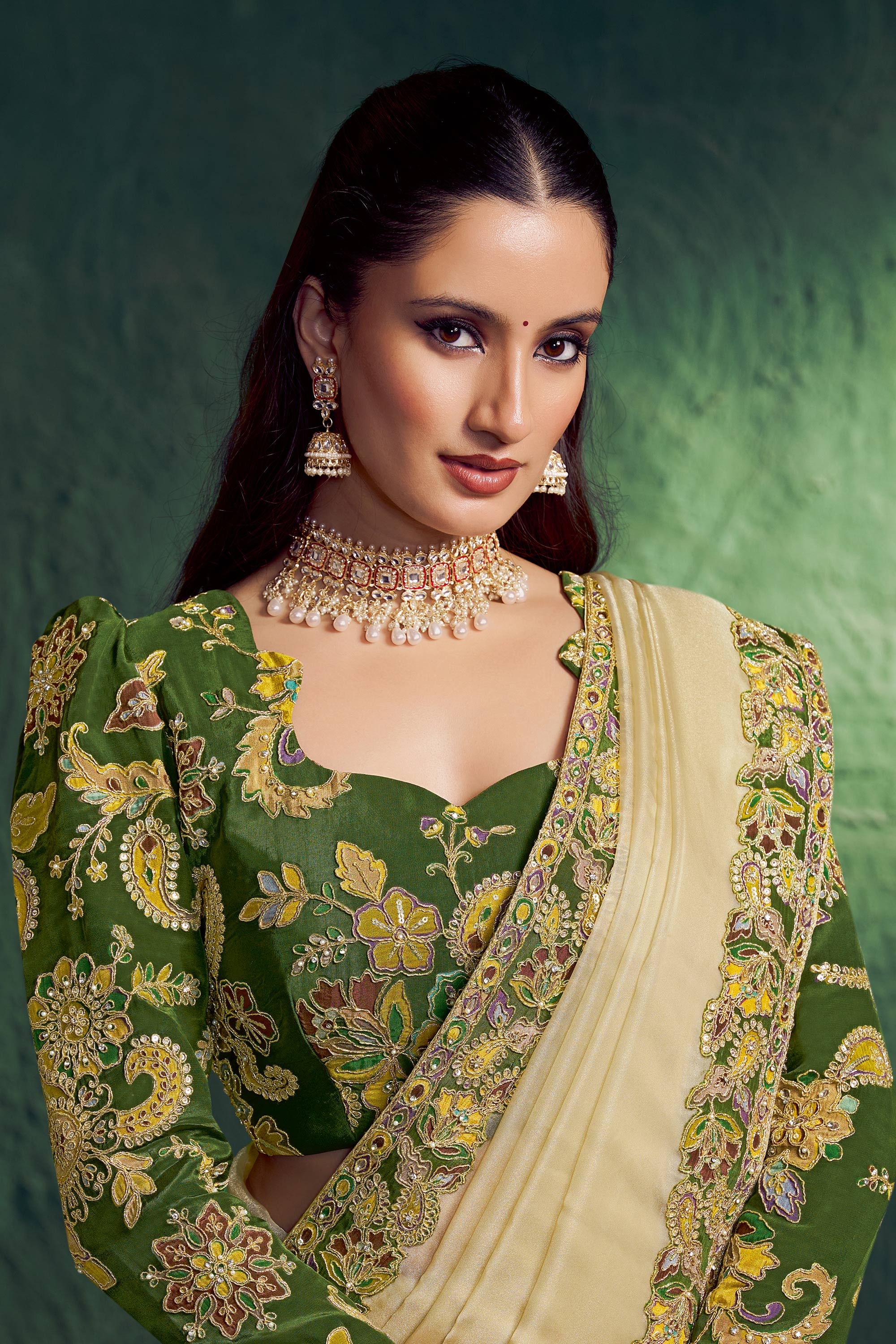 Beige Tissue Fabric Wedding Wear Readymade Saree