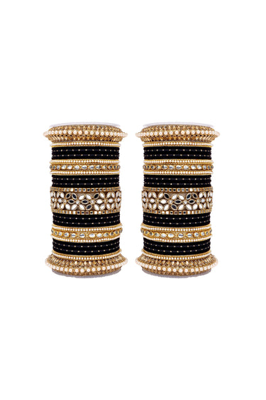 Black Color Alloy Material Charismatic Bridal Bangle Set With Flower Mirror Kada