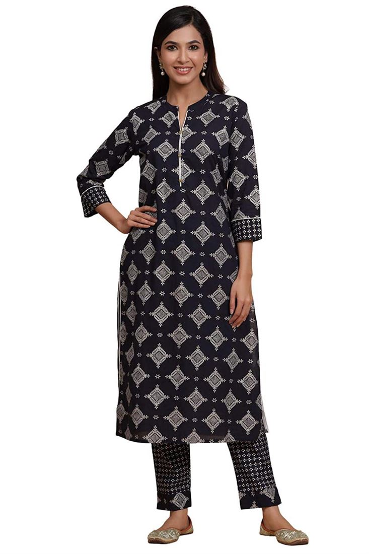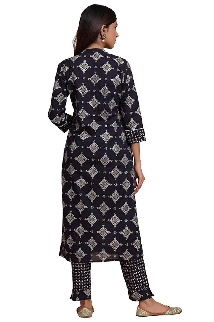 Black Color Cotton Fabric Function Wear Straight Cut Kurti With Pant