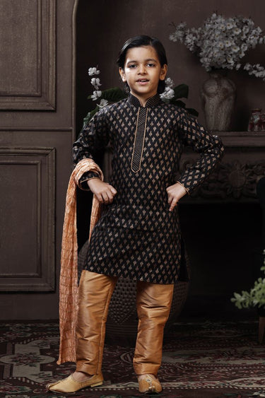 BLack Color Cotton Fabric Printed Sangeet Wear Readymade Boys Kurta Pyjama