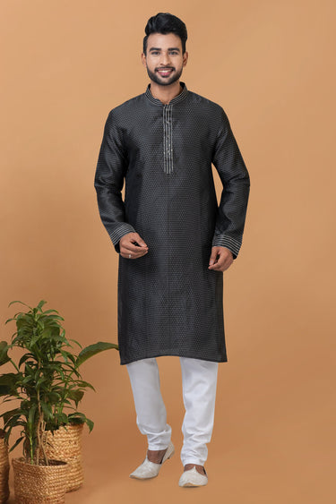 Black Color Readymade Art Silk Fabric Kurta Pyjama For Men