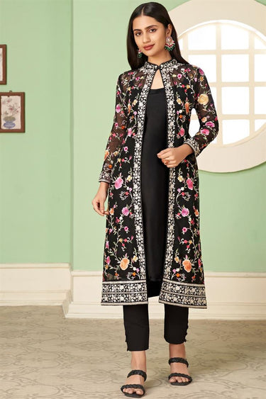 Black Color Tempting Georgette Jacket Style Salwar Suit