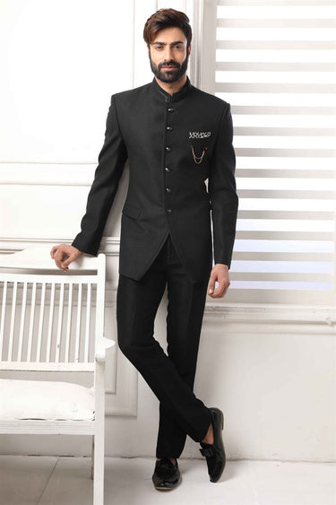 Black Color Wedding Wear Splendid Jodhpuri Suit In Fancy Fabric