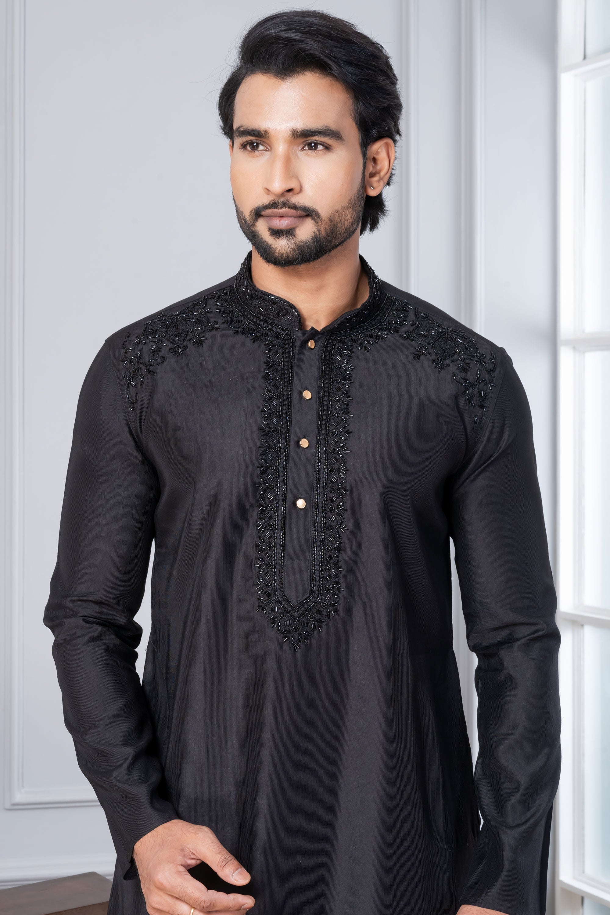 Black Cotton Sangeet Wear Trendy Readymade Kurta Pyjama For Men