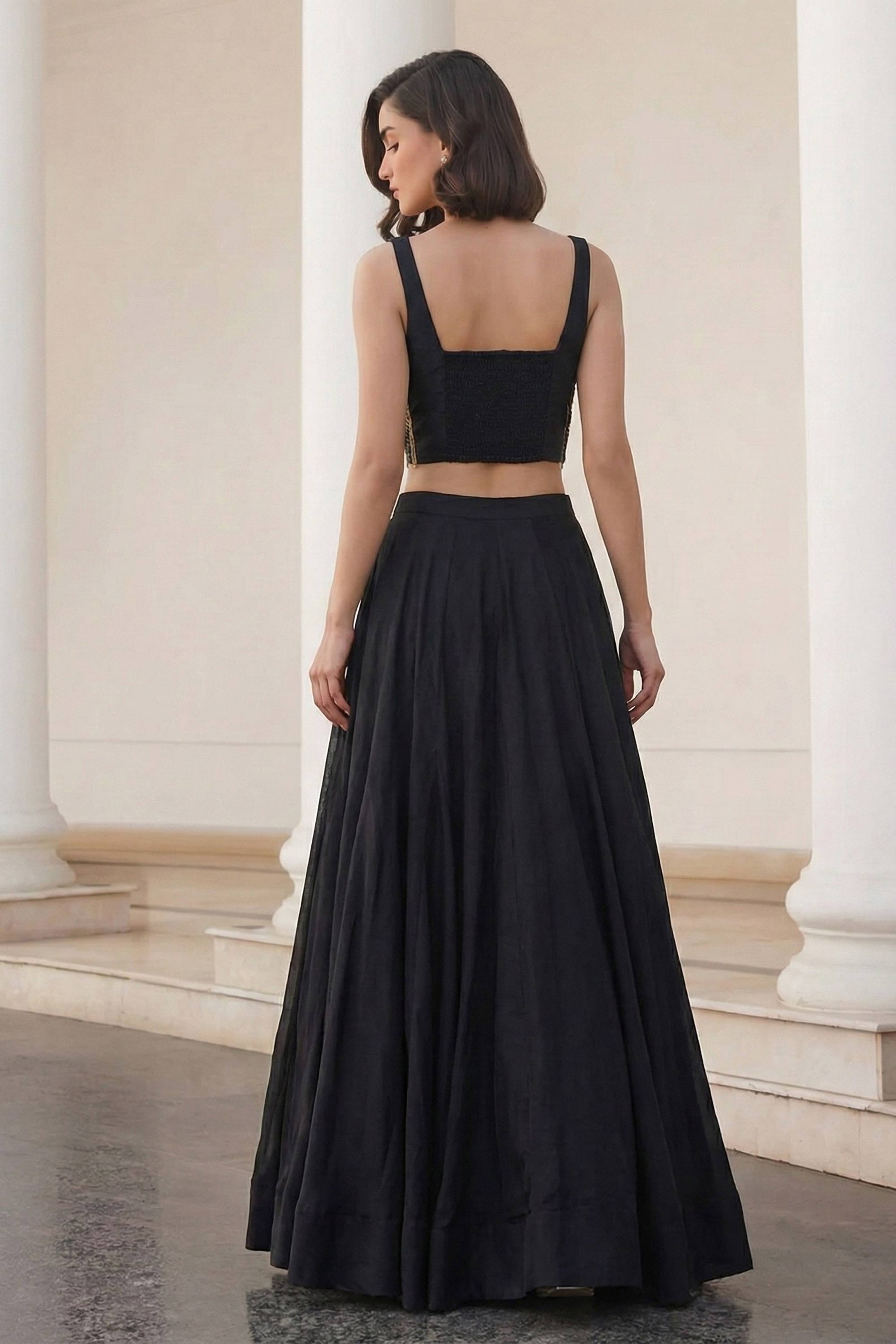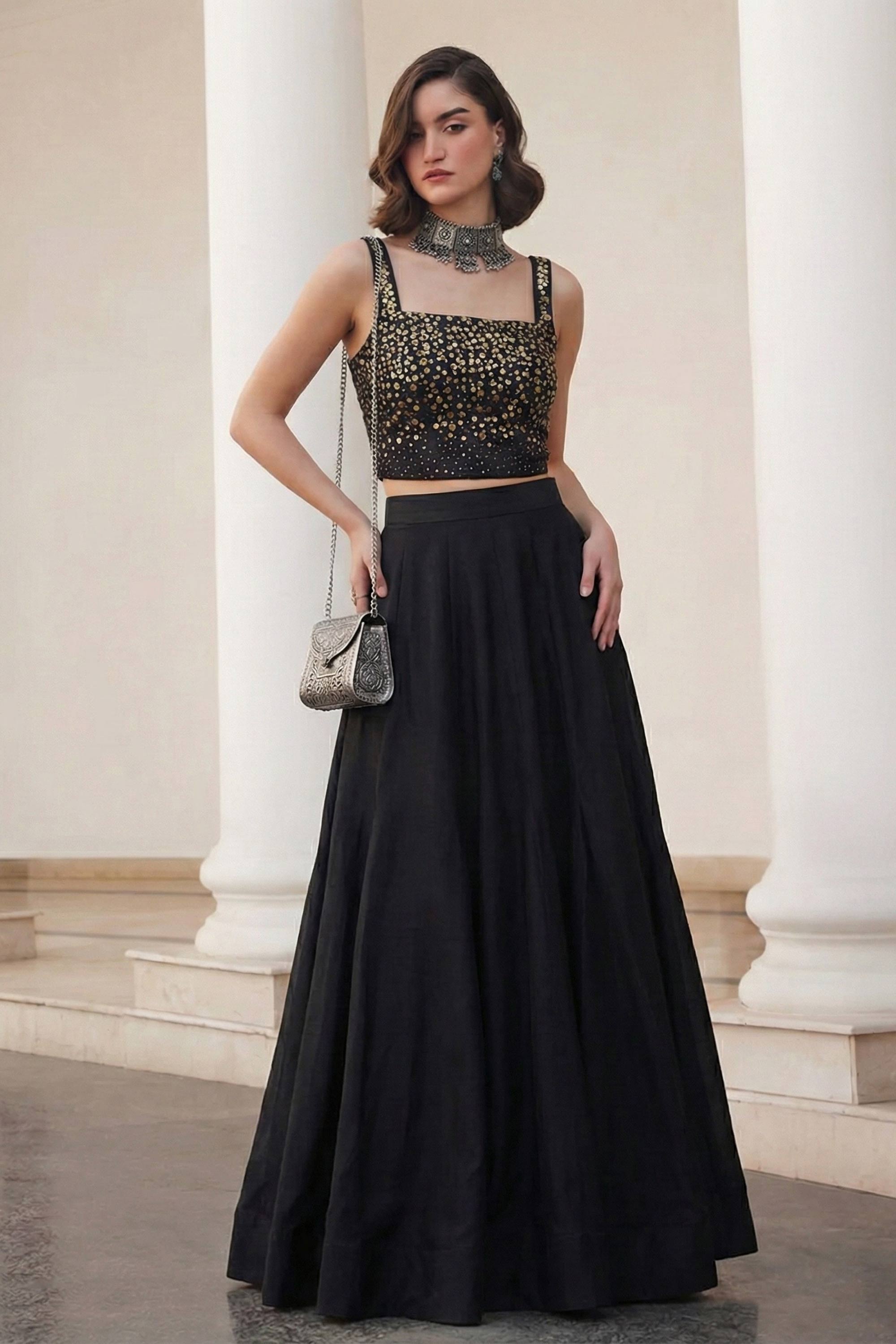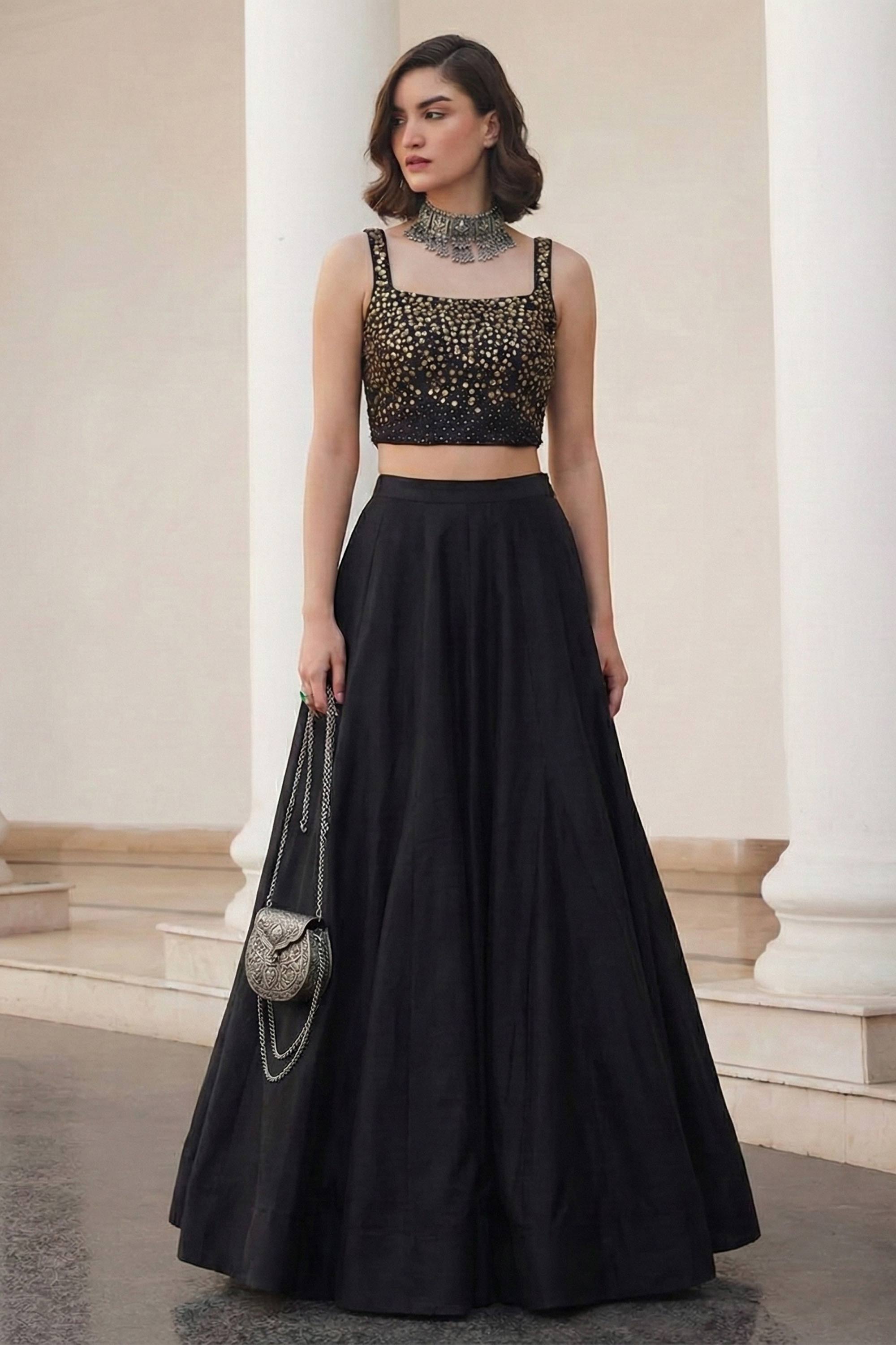 Black Festive Wear Art Silk Fabric Designer Readymade Lehega Choli