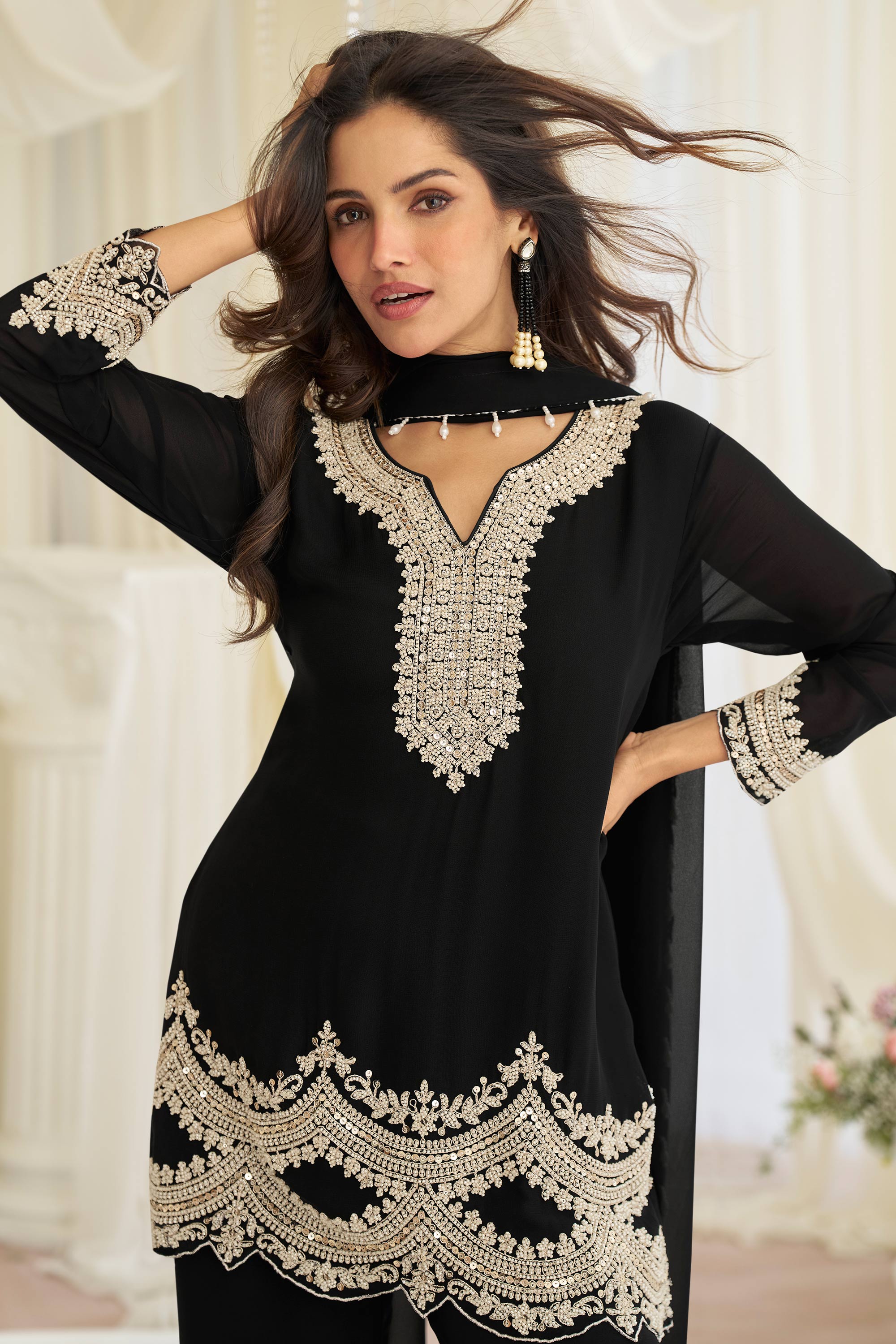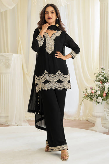 Black Georgette Embroidered Work Designer Readymade Suit