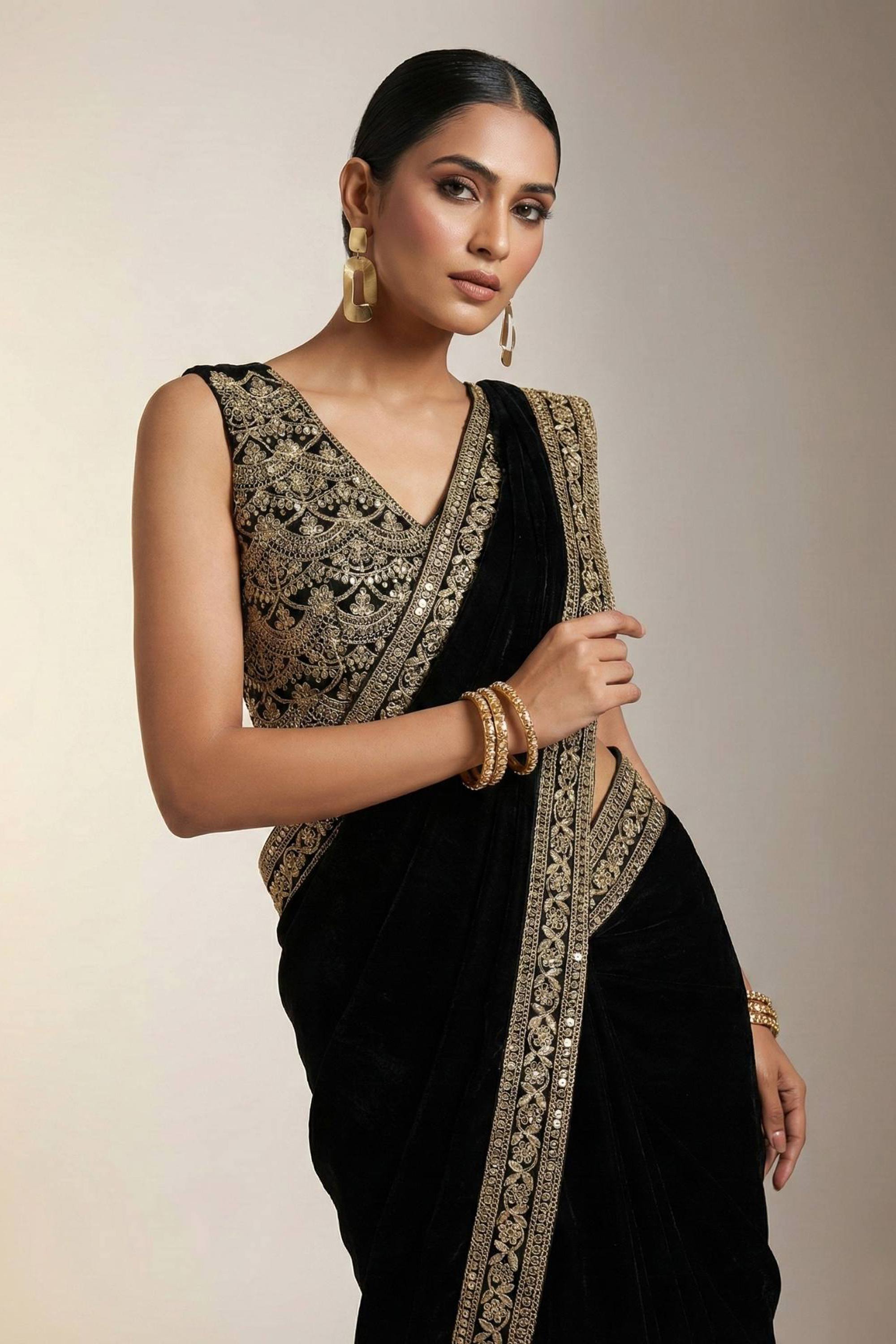 Make a stylish statement at any celebration with this elegant Party Wear Saree crafted in luxurious viscose velvet. The smooth drape and rich color enhance its overall appeal, while the detailed border work brings a sophisticated charm to the ensemble. Paired with a matching viscose velvet blouse, this saree is an ideal choice for parties and special occasions. Note: Due to digital photography, slight color variations may occur.