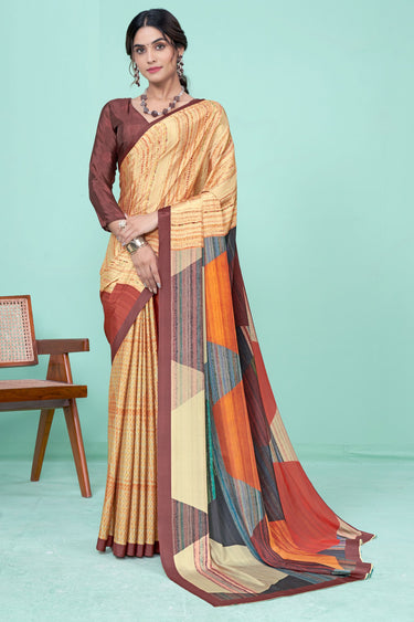 Blazing Multi Color Printed Crepe Fabric Casual Saree