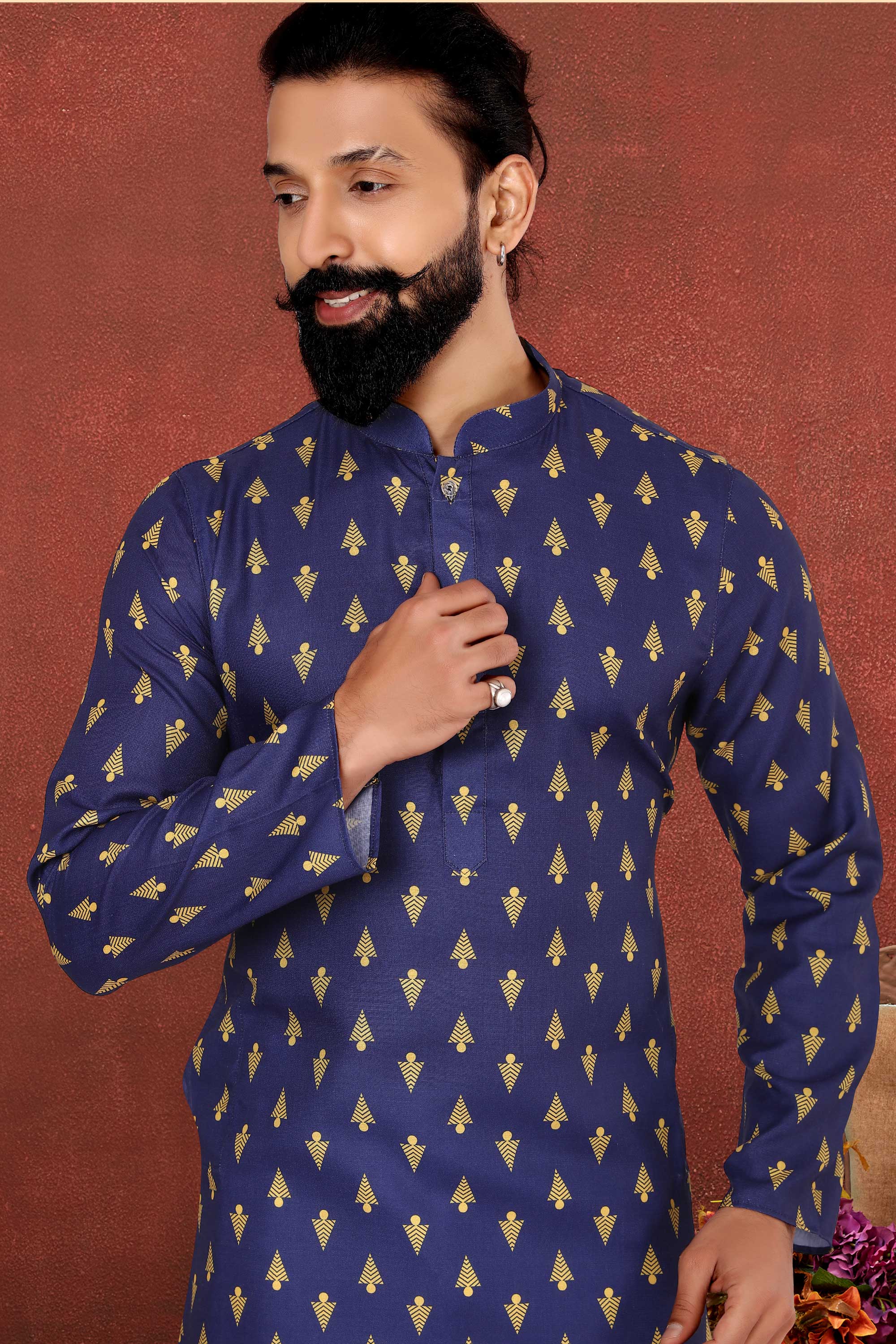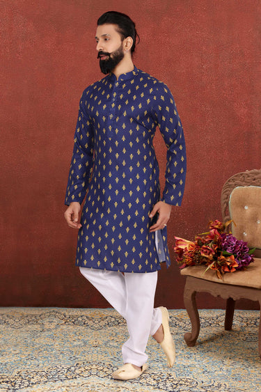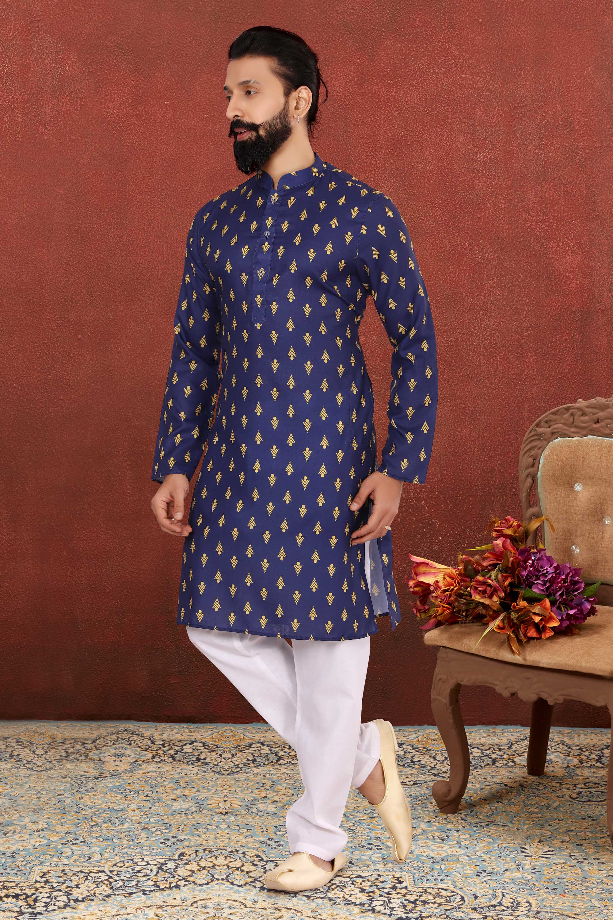 Blue Color Gorgeous Cotton Wedding Wear Kurta Pyjama For Men