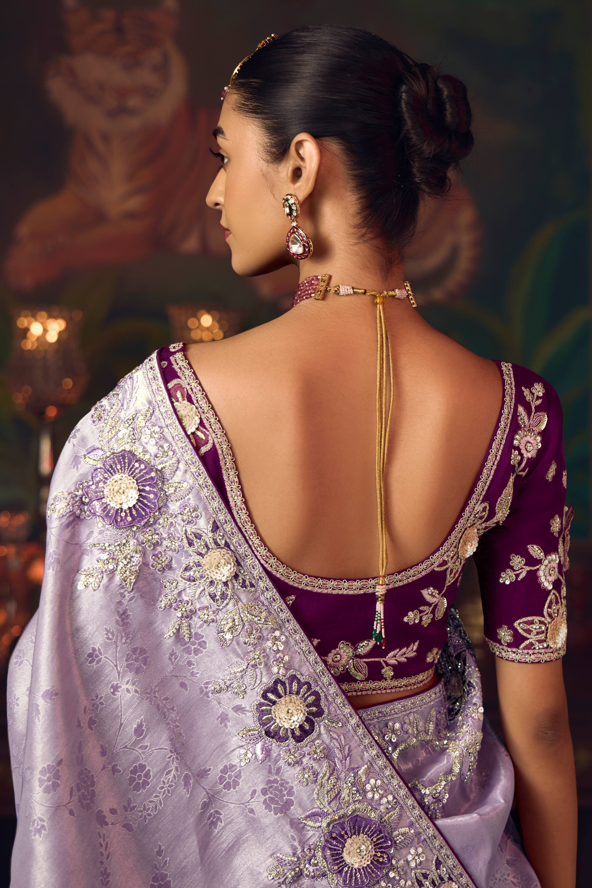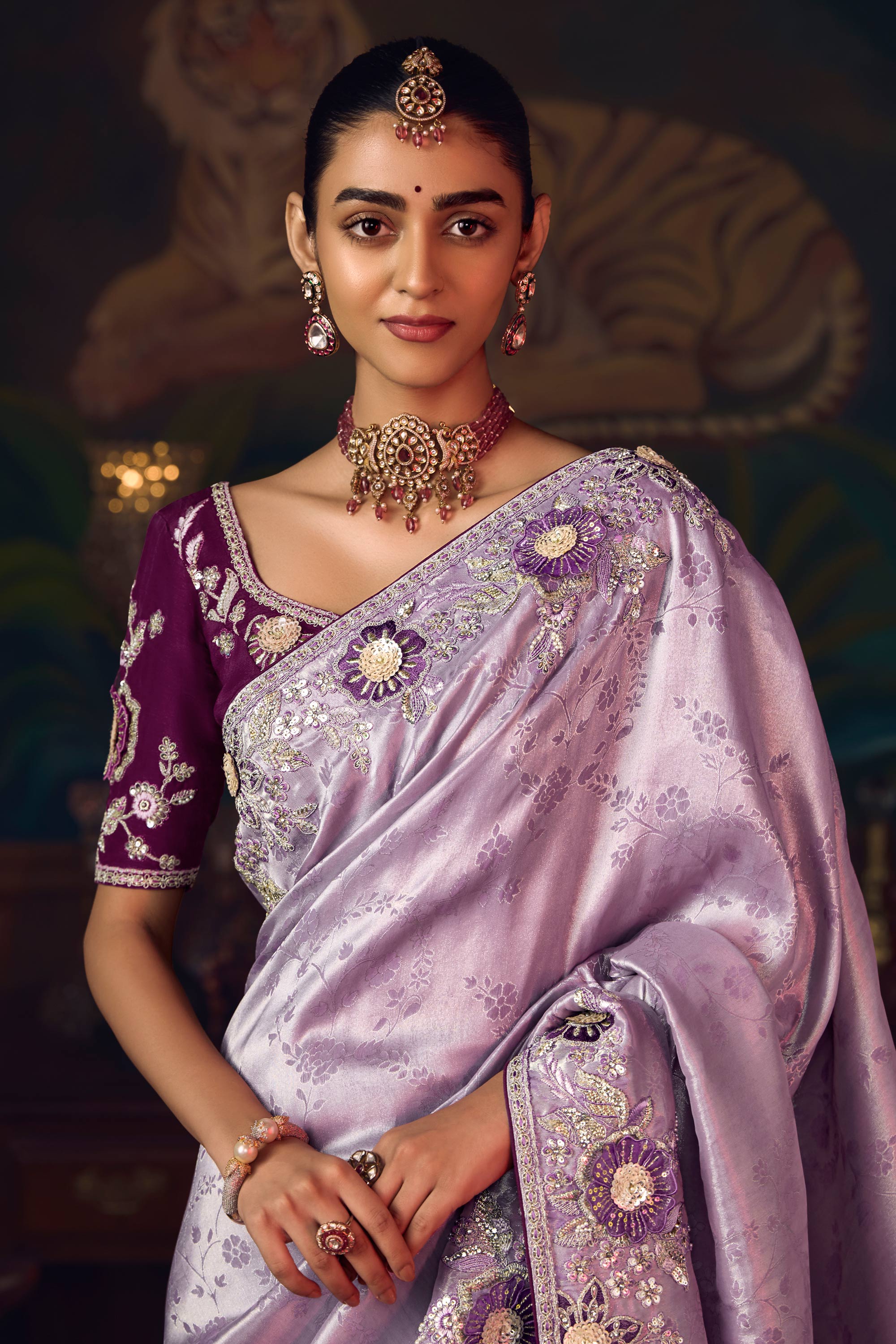 Border Work Silk Lavender Sangeet Wear Saree