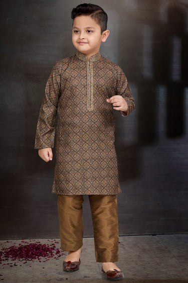 Brown Color Function Wear Cotton Fabric Stylish Readymade Kurta Pyjama For Boys