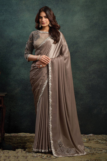 Brown Wedding Wear Satin Fabric Wedding Wear Saree